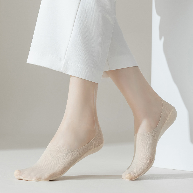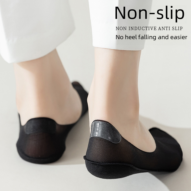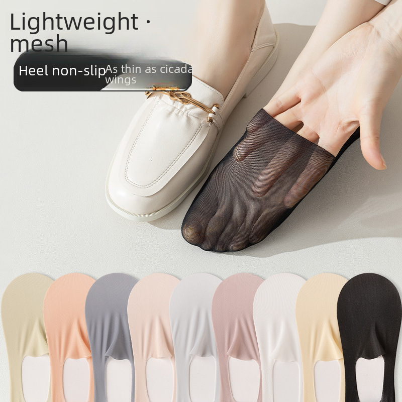 Boat socks women's sweat-absorbent ultra-thin socks silicone non-slip invisible socks solid color hollow mesh ice silk socks