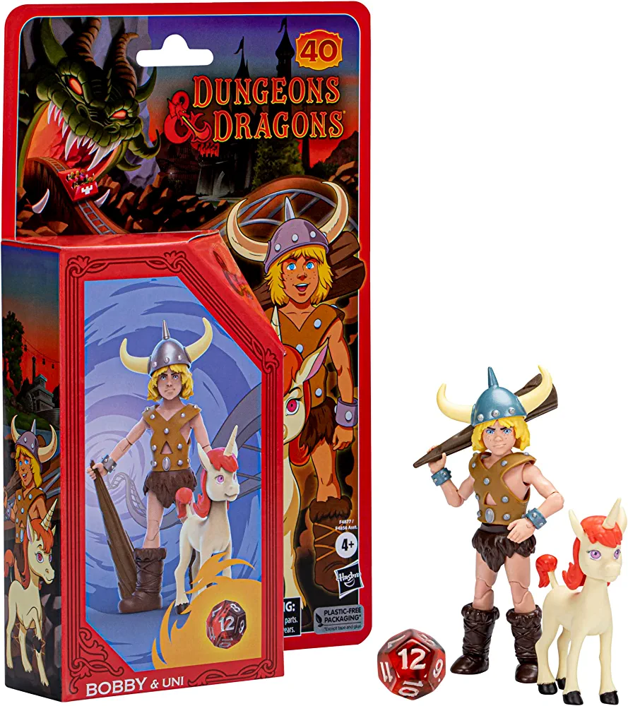 | nameOriginal | Dungeons & Dragons Cartoon Classics 6-Inch-Scale Bobby & Uni 2-Pack Action Figures, D&D 80s Cartoon, Includes d12 from Exclusive D&D Dice Set |