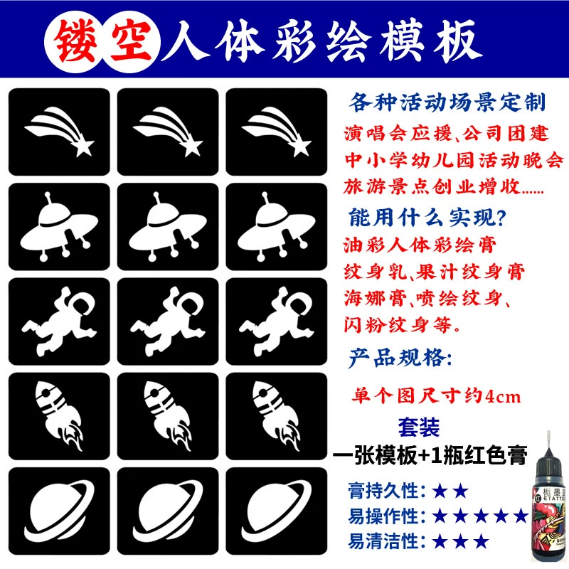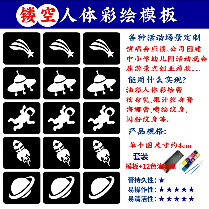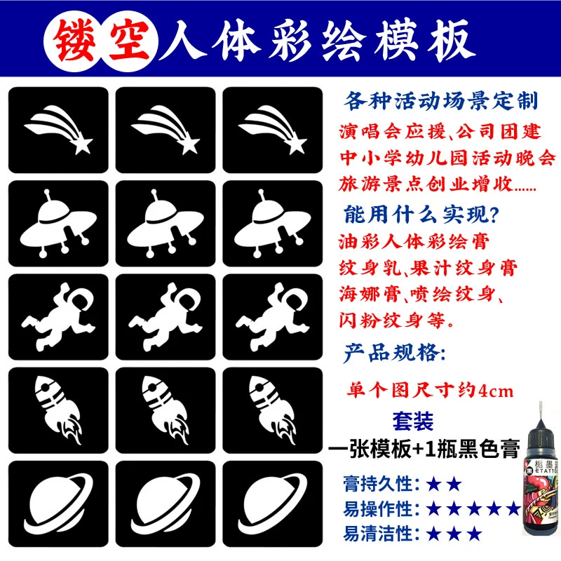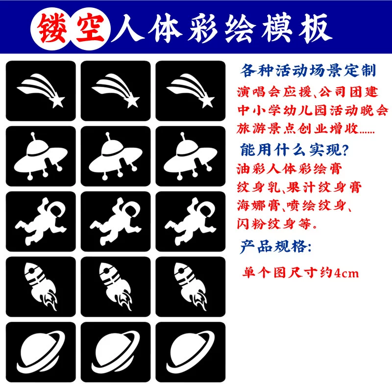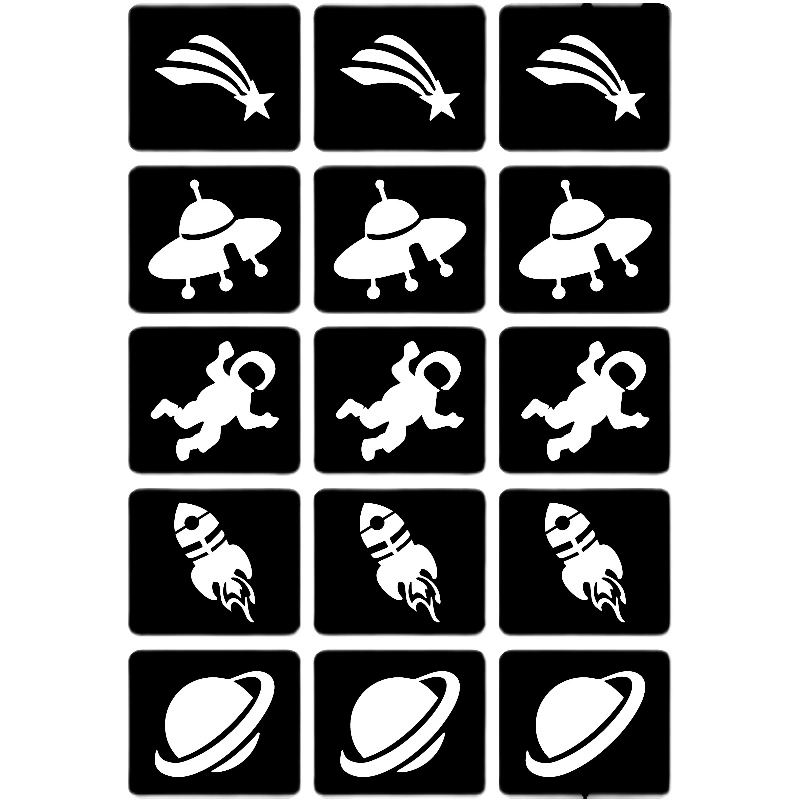 | nameOriginal | Body painting hollow face sticker template astronaut planet rocket hollow sticker children's cartoon painting pattern |