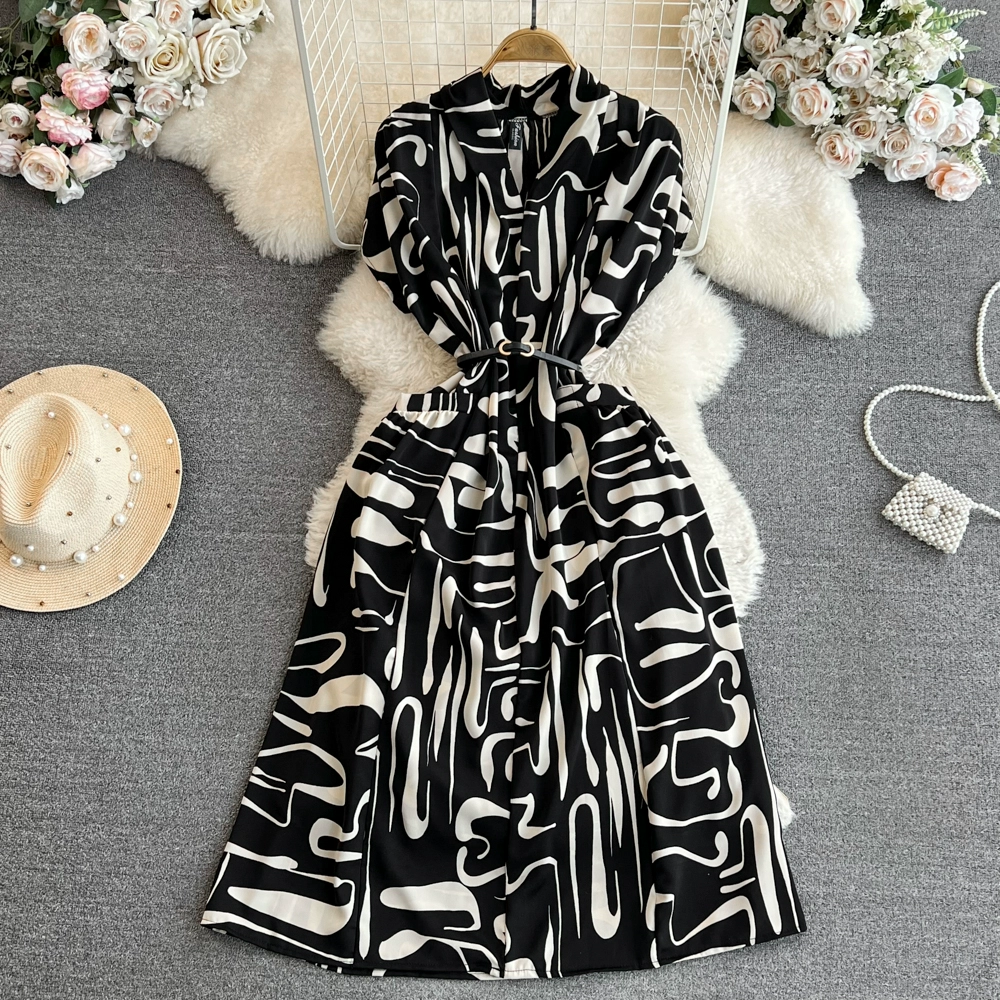 | nameOriginal | Bohemian beach short-sleeved V-neck A-line plaid maxi skirt |