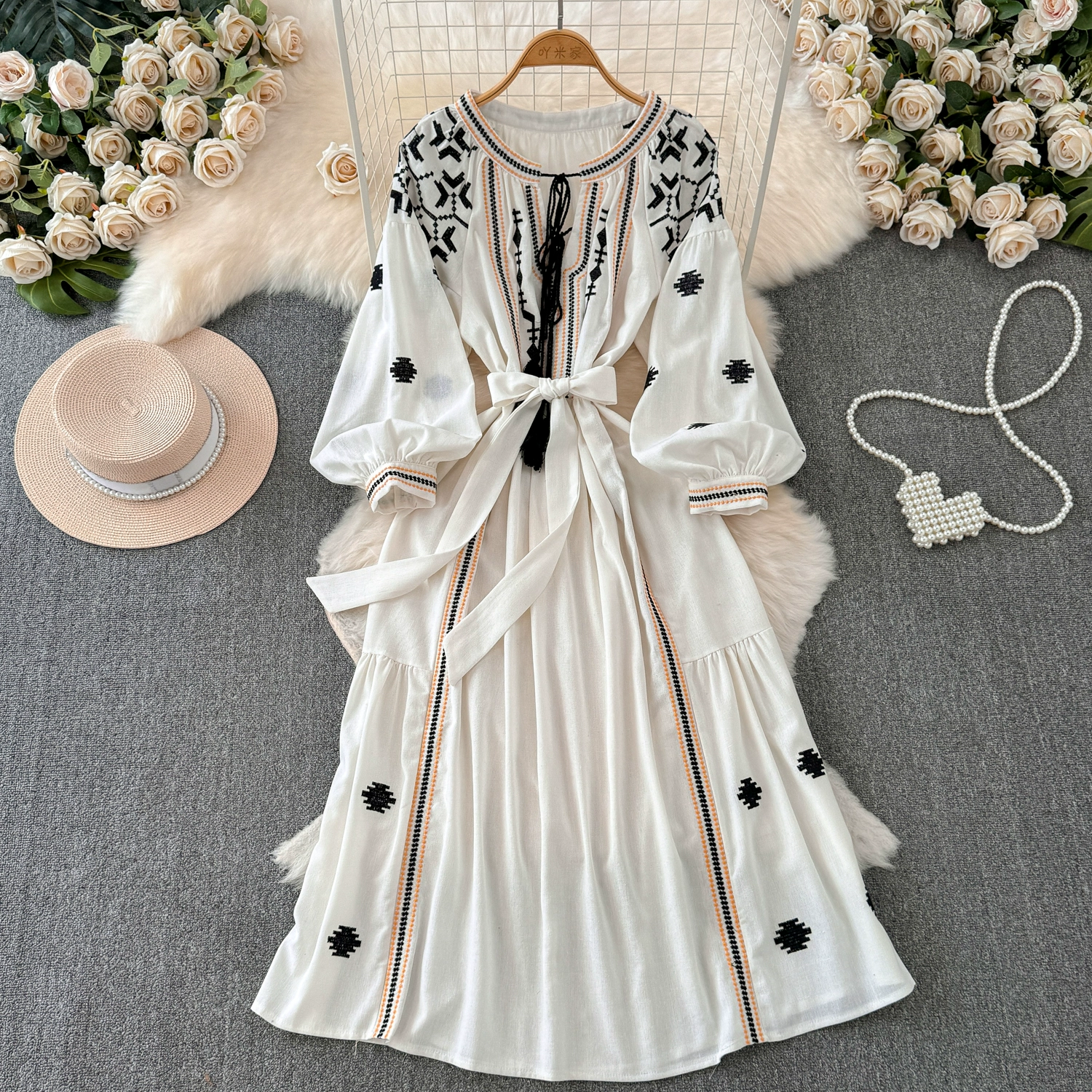 | nameOriginal | Bohemian dress female yellow Yunnan ethnic style photo seaside vacation Sanya travel wear beach skirt |