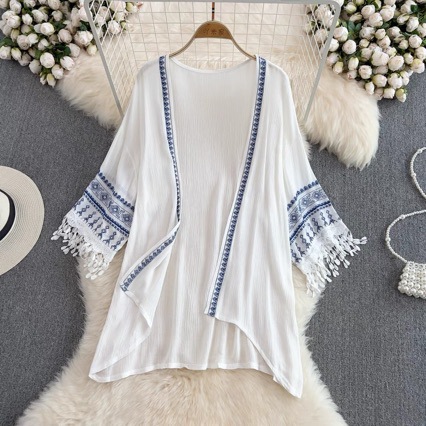 | nameOriginal | Bohemian Ethnic Style Embroidered Tassel Sunscreen Clothes Women's Summer Thin Outer Shawl Long Cardigan Top |