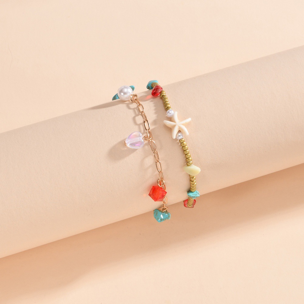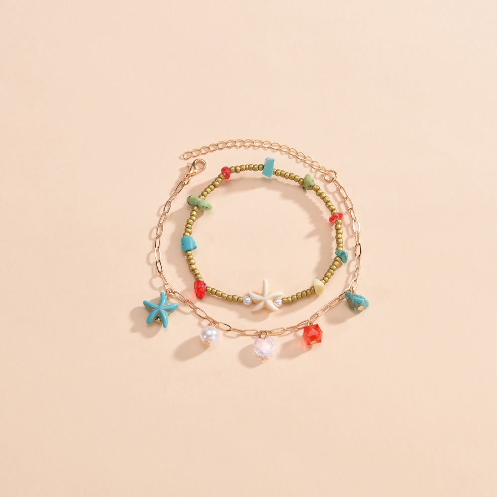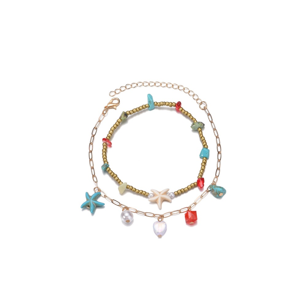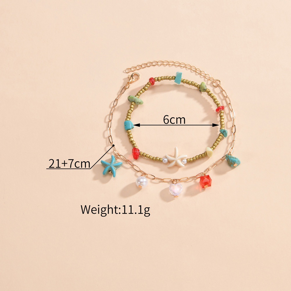| nameOriginal | Bohemian holiday style irregular turquoise pearl turquoise starfish rice bead alloy anklet 2-piece set |