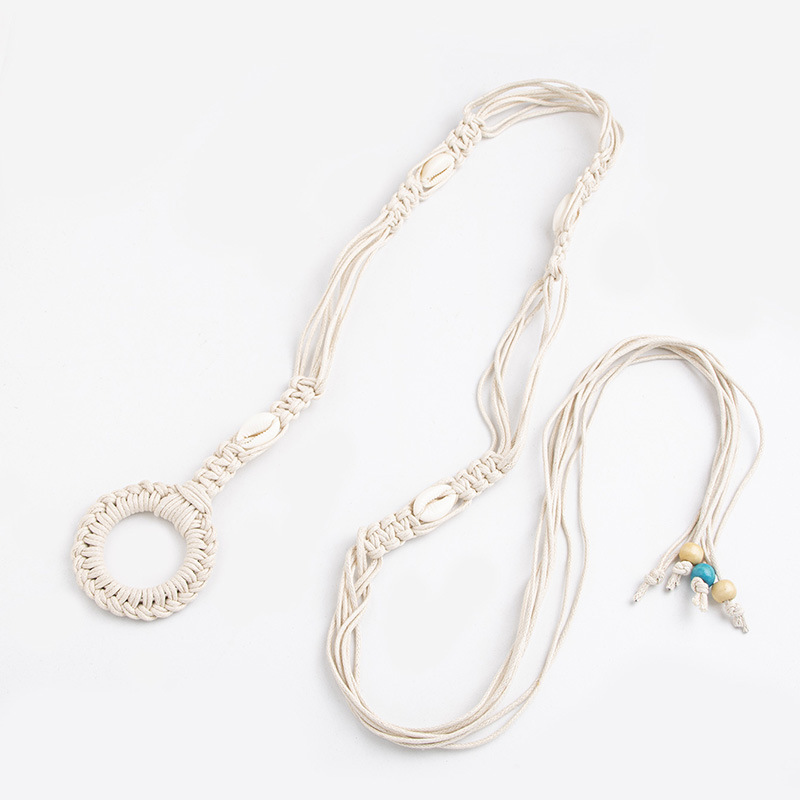 Bohemian round wooden buckle wax rope woven knotted ethnic style handmade turquoise women’s hemp rope leisure holiday style waist rope