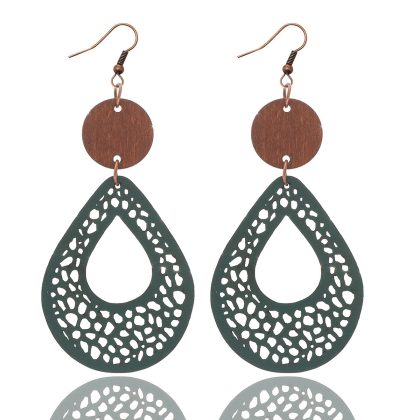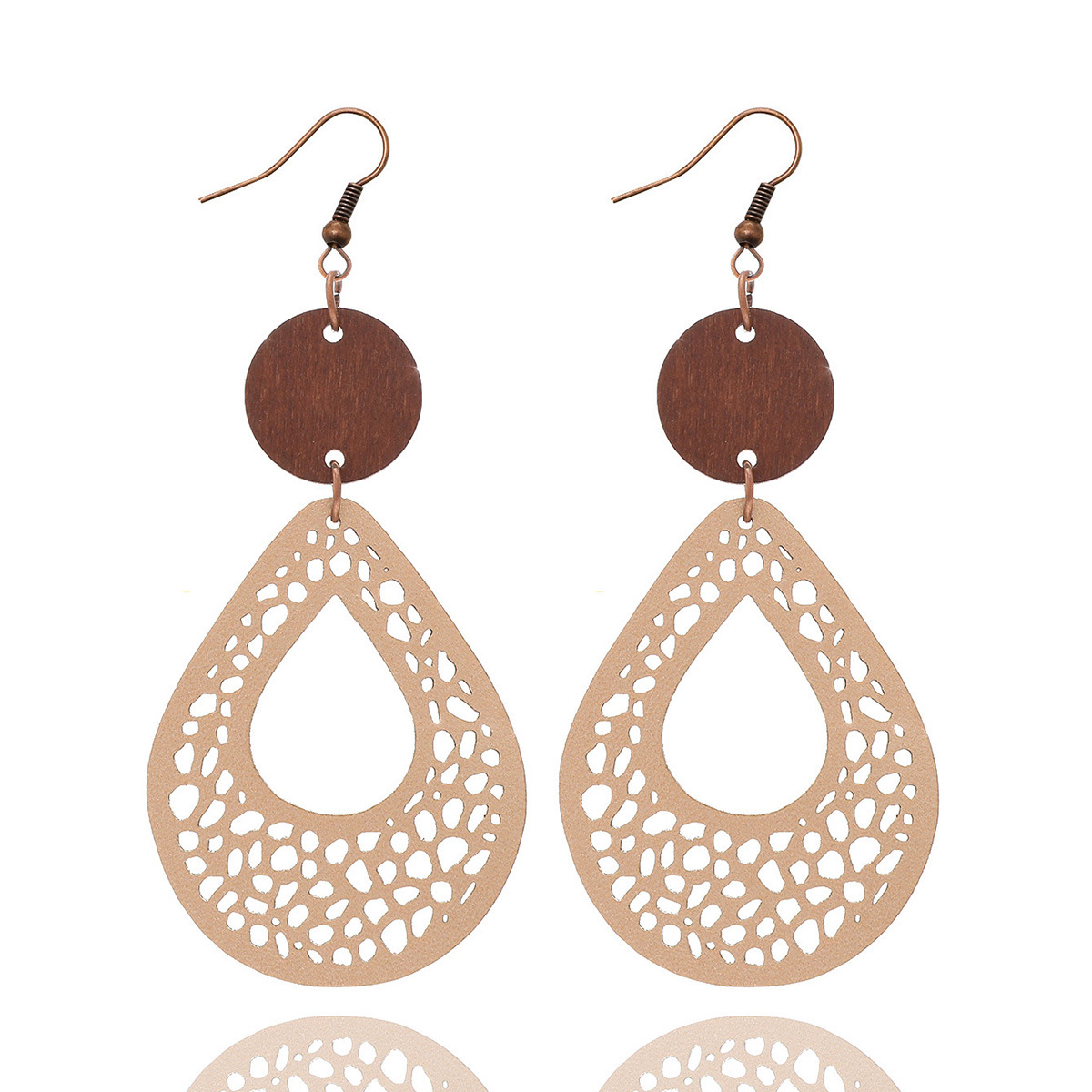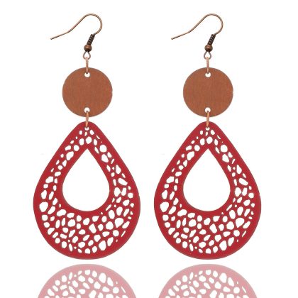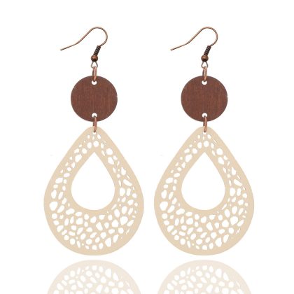 | nameOriginal | Bohemian style vintage earrings earrings European and American earrings hollow mesh handmade wood piece leather cross-border |
