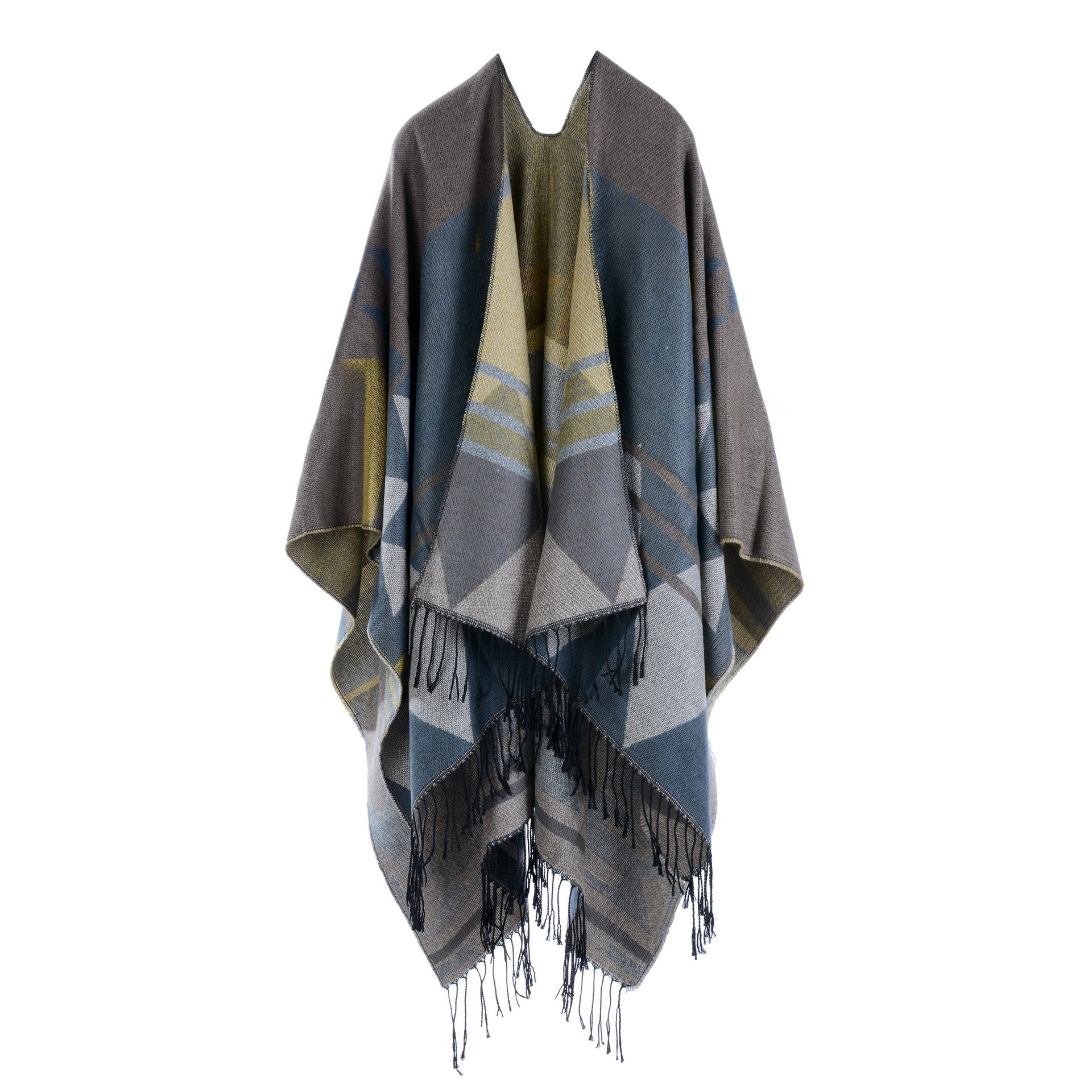 Bohemian Tassel European and American Lengthened Thickened Imitation Cashmere Autumn and Winter Ethnic Style Travel Split Shawl Cape