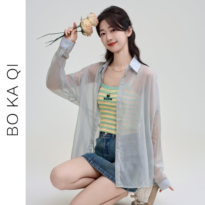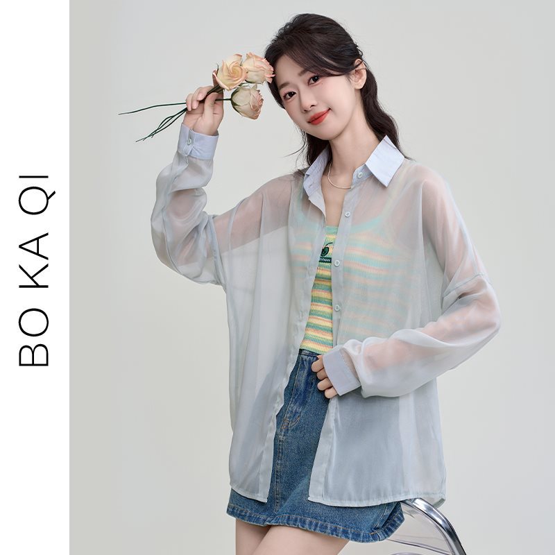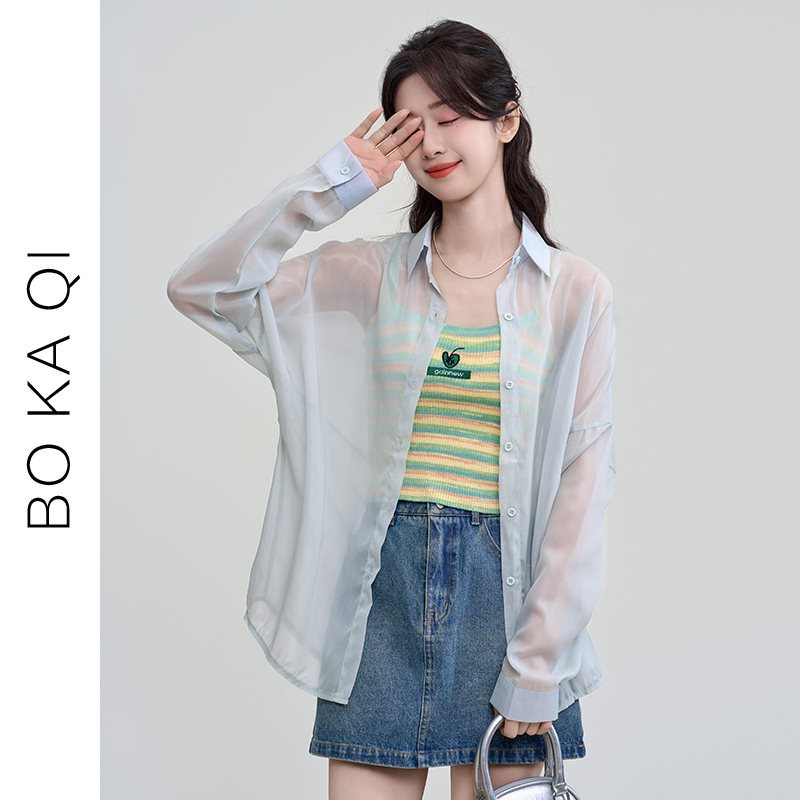 | nameOriginal | Boka Qi 2024 Summer New Solid Color Thin Long-sleeved Sunscreen Shirt Women's All-match Loose Chiffon Top Trendy |