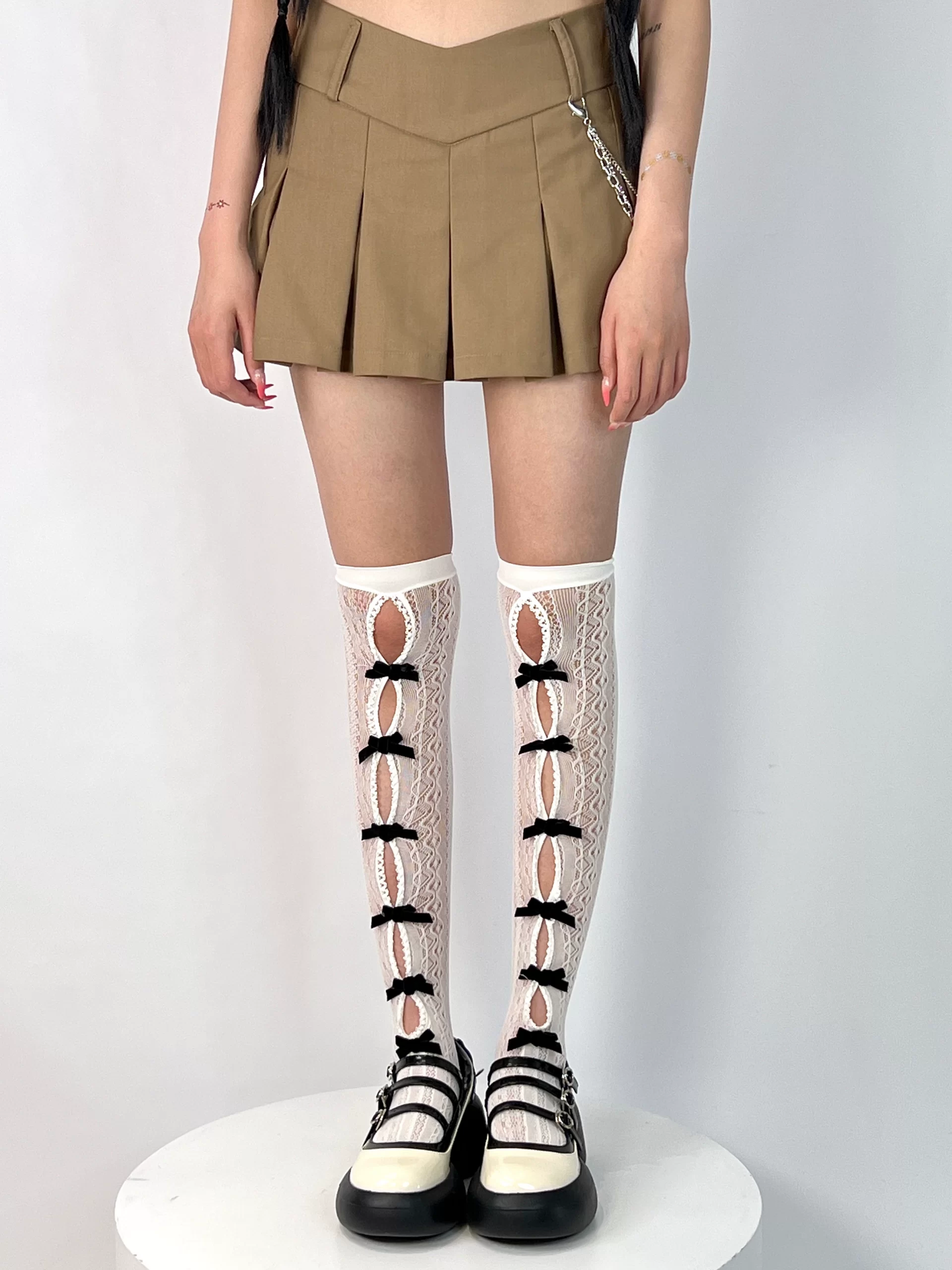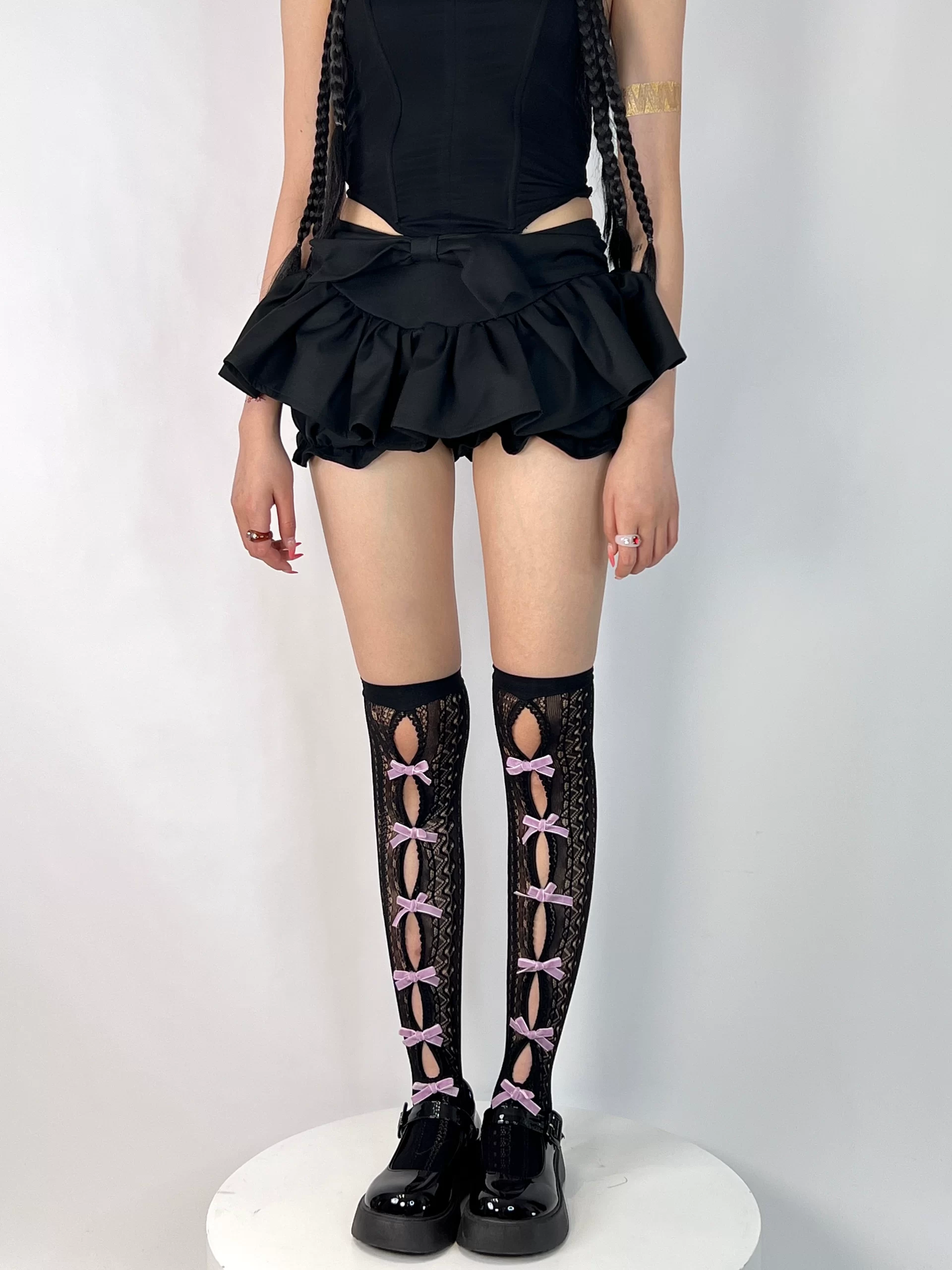 | nameOriginal | BON niche design sweet and cool hollow lace bow fishnet stockings pure lust lolita slimming knee high stockings |