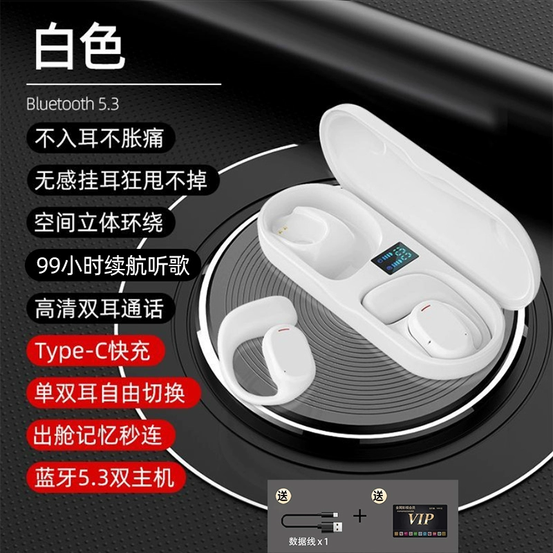 Bone conduction Bluetooth headset 2024 new wireless sports noise reduction ear-mounted ultra-long battery life suitable for Apple and Huawei