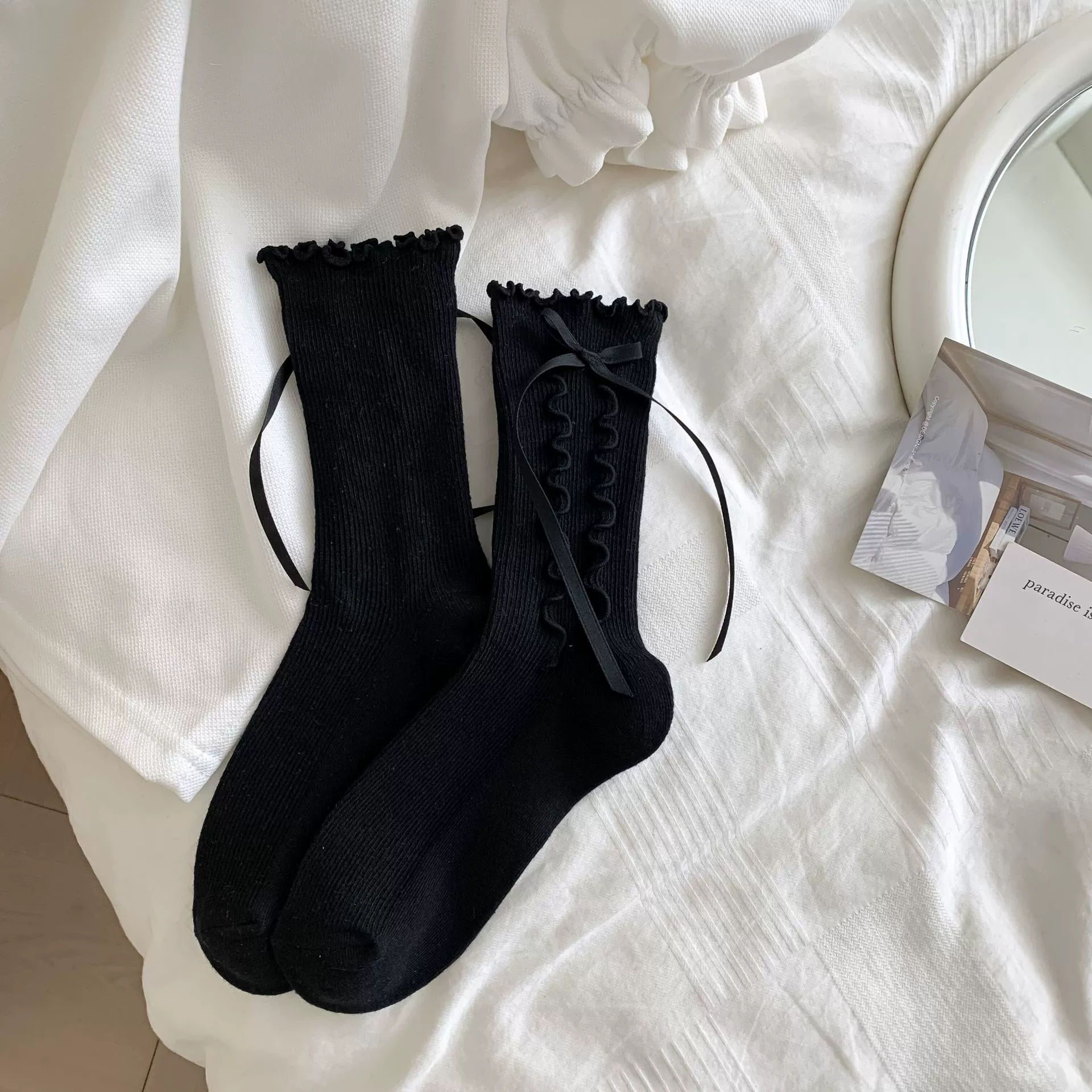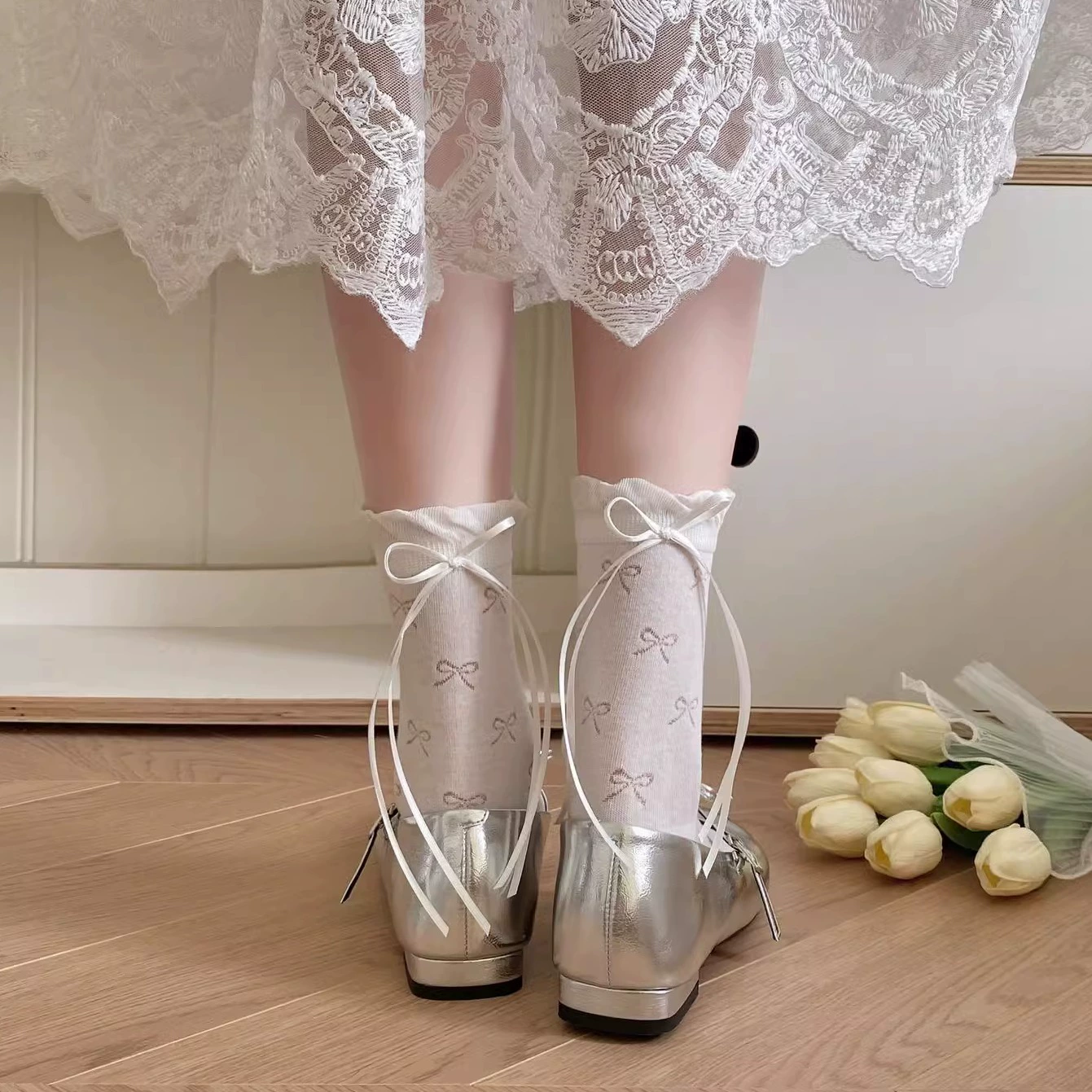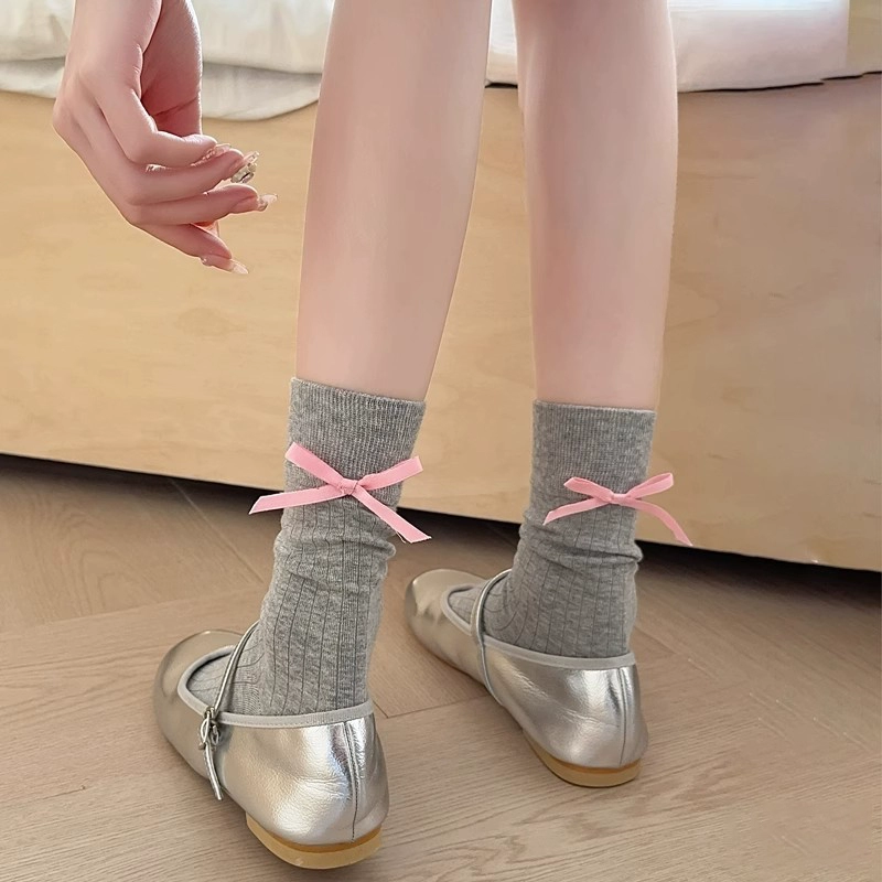 | nameOriginal | Boneless ballet style bow gray girl socks |