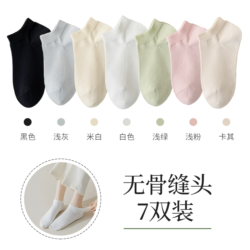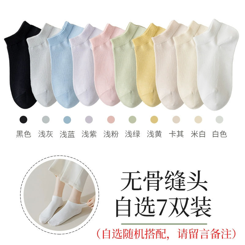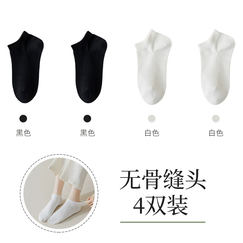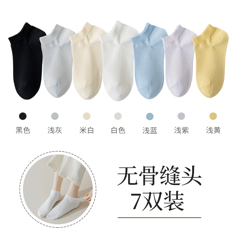 Boneless seam socks, women's socks, spring and summer thin 100% genuine cotton spring and autumn black and white women's boat socks