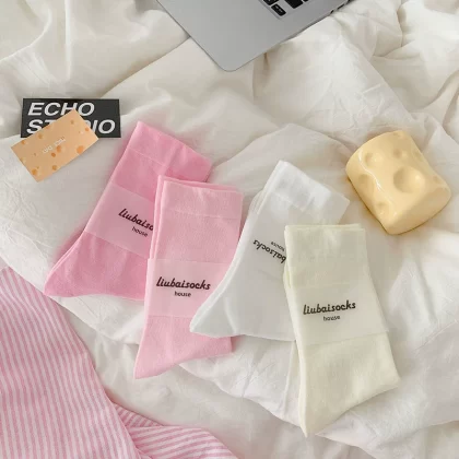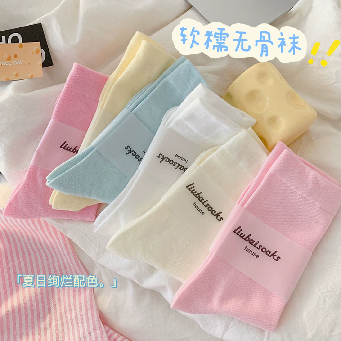 | nameOriginal | Boneless socks women's mid-calf socks summer thin pure cotton ins trendy dopamine color white sports summer stockings |