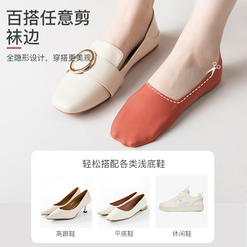 Bonus Socks Women's Summer Thin Cotton Bottom Short Socks Ice Silk Shallow Mouth Invisible Socks Non-slip Do Not Fall Off with Boat Socks Women's Summer