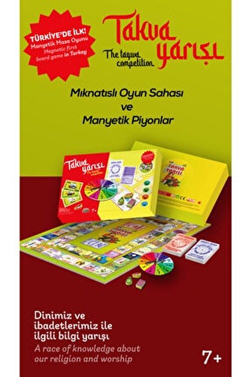 Magnetic Playground and Magnetic Pawns Description: Takva racing is a group game that will allow players to love, learn the worship and good manners that our religion predicts, and also stay away from bad behavior. The player will learn some of the behaviors that are allowed to enter Heaven through the game. He will also get conscious about good manners such as studying alongside worshipments, brushing teeth, not lying, getting along with friends, observe entrance, not wasting. The game is supported in English, the player will have learned the English equivalent of words. *Harmless new version. Release Date: 2021 Language: Turkish – English Size: 43 x 32 cm