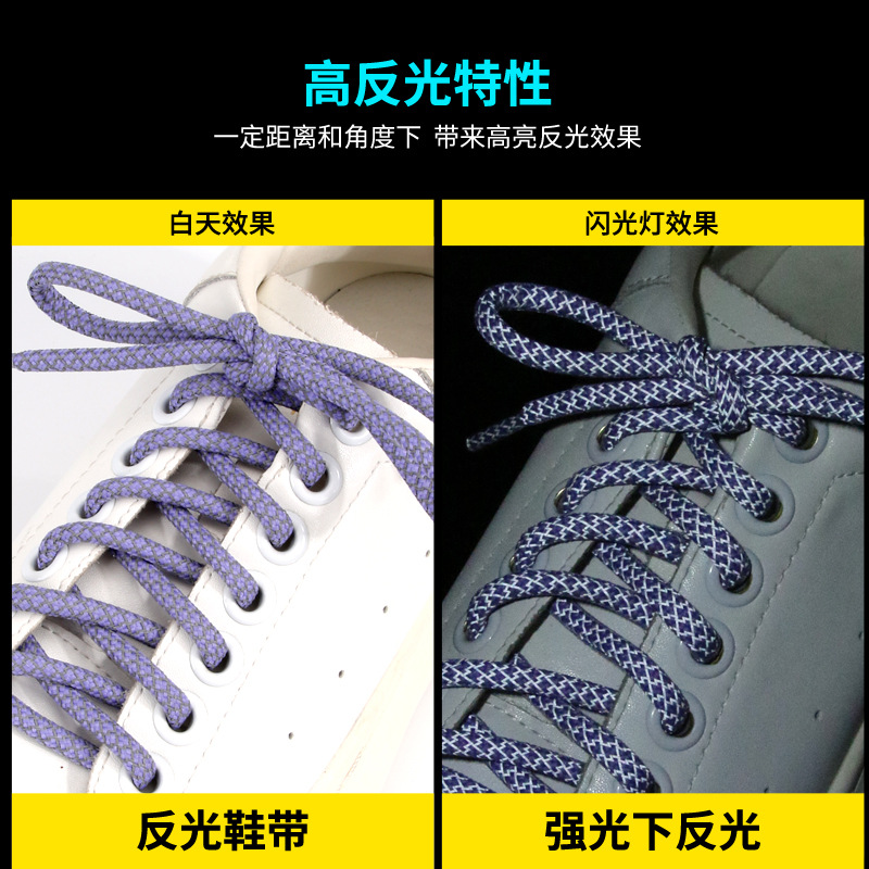 Boots couple bright reflective shoelaces round Sports shoelaces factory wholesale stars reflective shoelaces