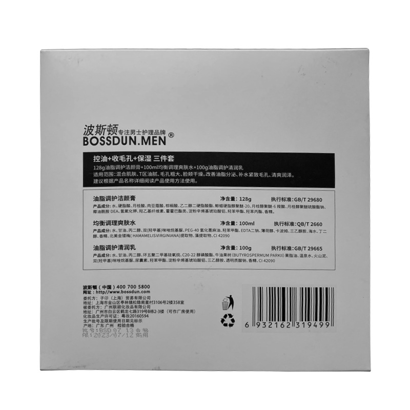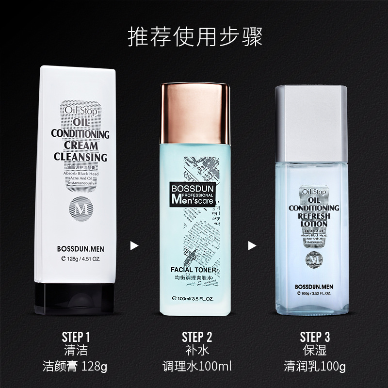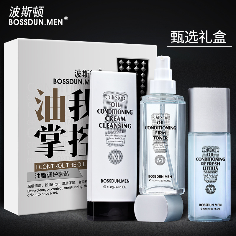 | nameOriginal | Boston men's skin care set oil control moisturizing refreshing moisturizing cream facial cleanser spring and summer skin care three sets of boxes |