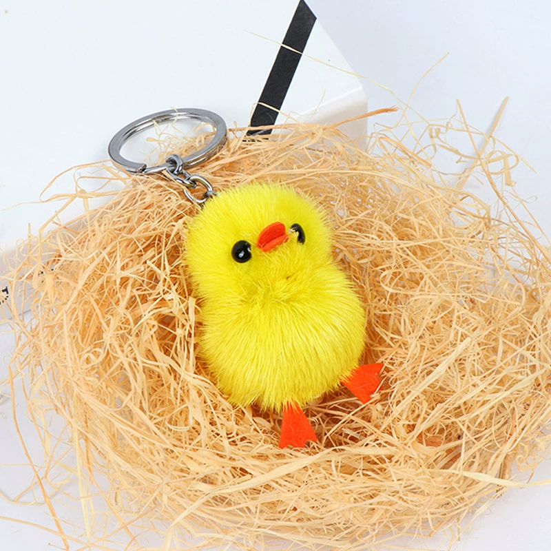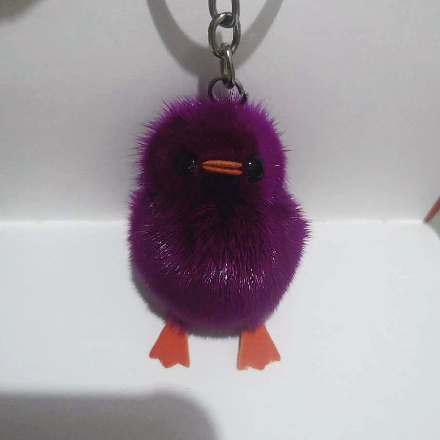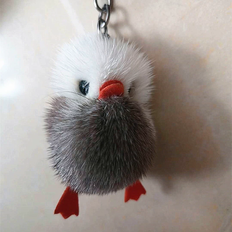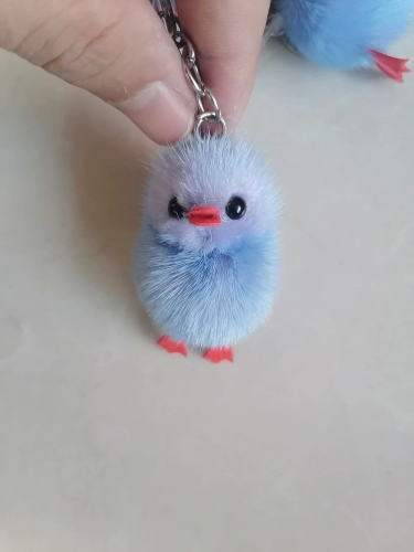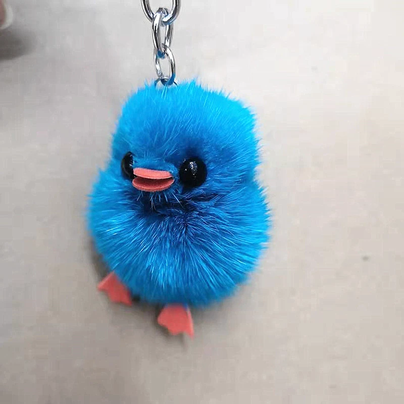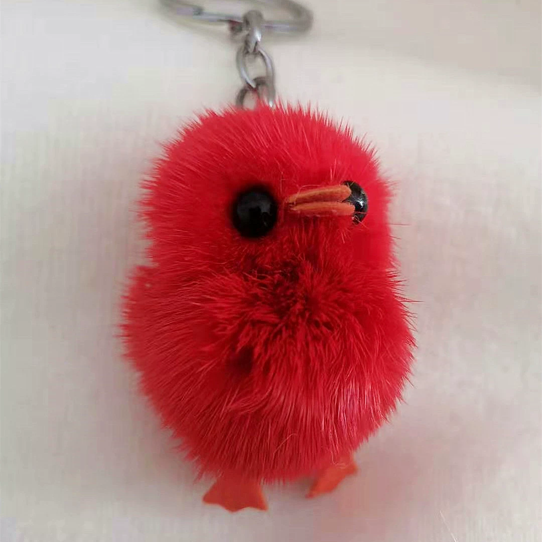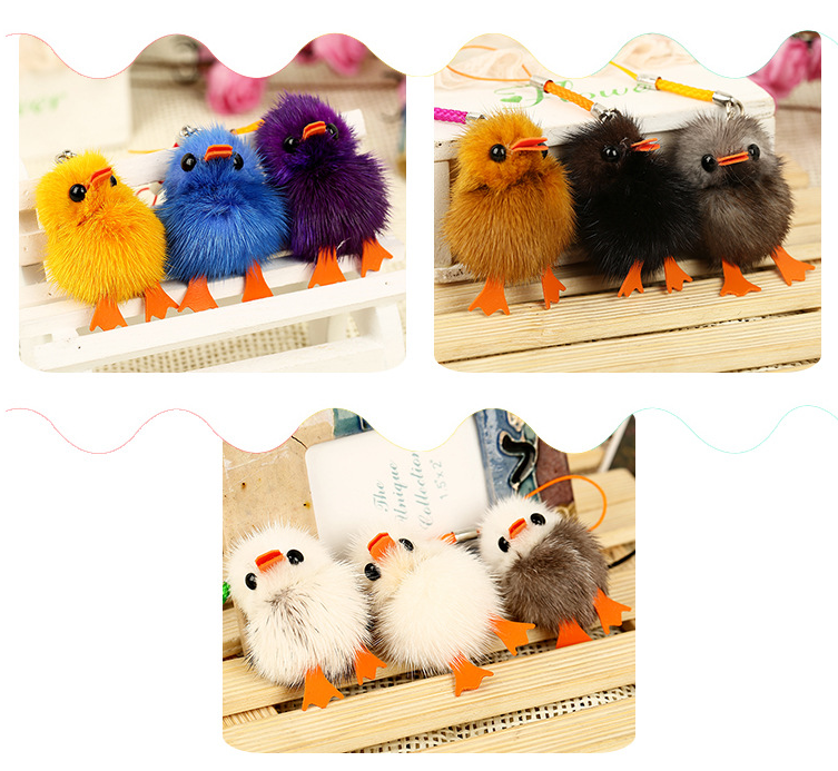 Boutique mink fur little yellow duck keychain cute mini plush chick mobile phone doll car key pendant