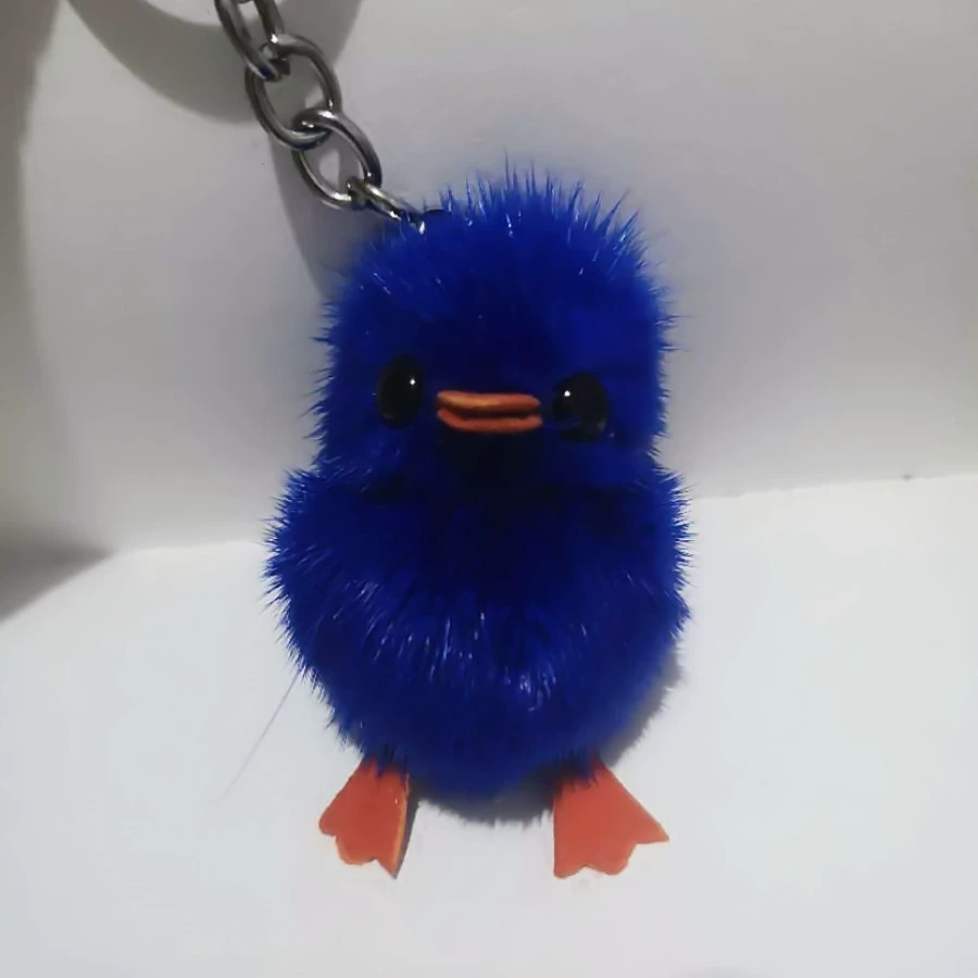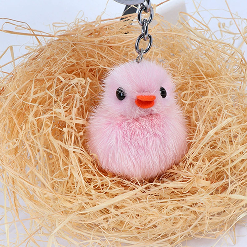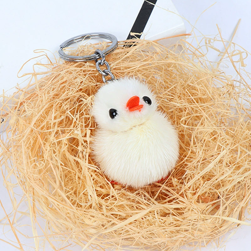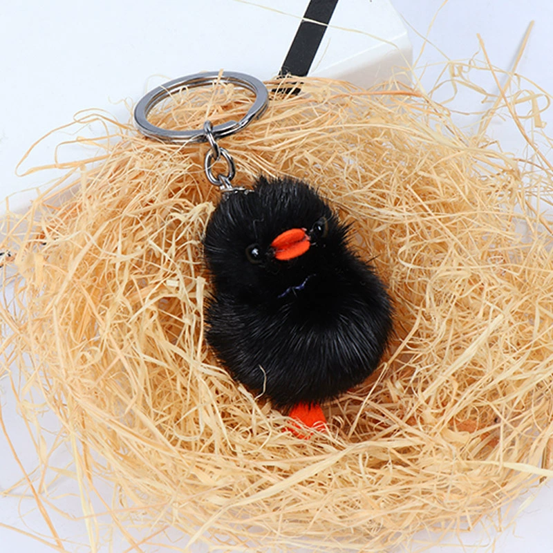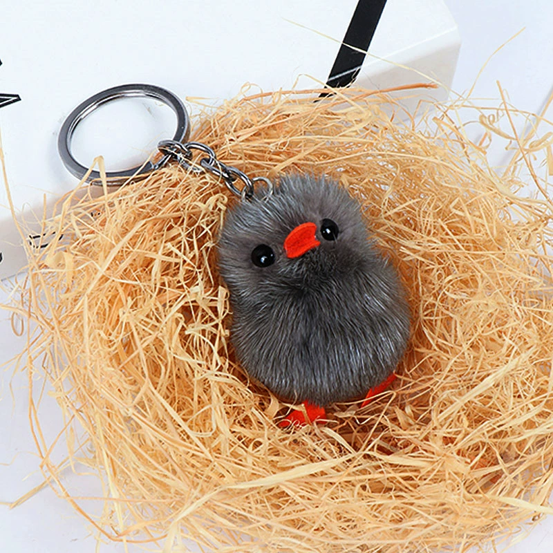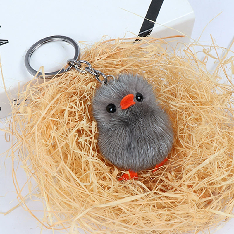 Boutique mink fur little yellow duck keychain cute mini plush chick mobile phone doll car key pendant
