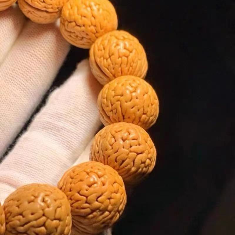 | nameOriginal | Boutique Qinling wild brain pattern peach core bracelet original seed small willow leaf navel round Buddha beads Wenwan peach bracelet for men |