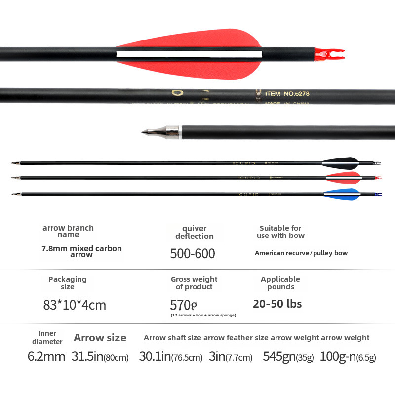 Bow and Arrow manufacturers can choose multiple specifications of bow and arrow with an inner diameter of 6.2mm mixed carbon arrow