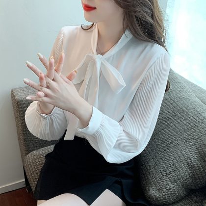 Bow Business Wear White Shirt Women’s Autumn New 2023 Long-sleeved Loose Western Style Chiffon