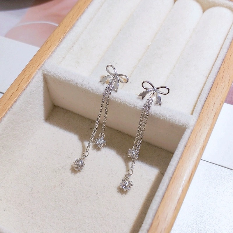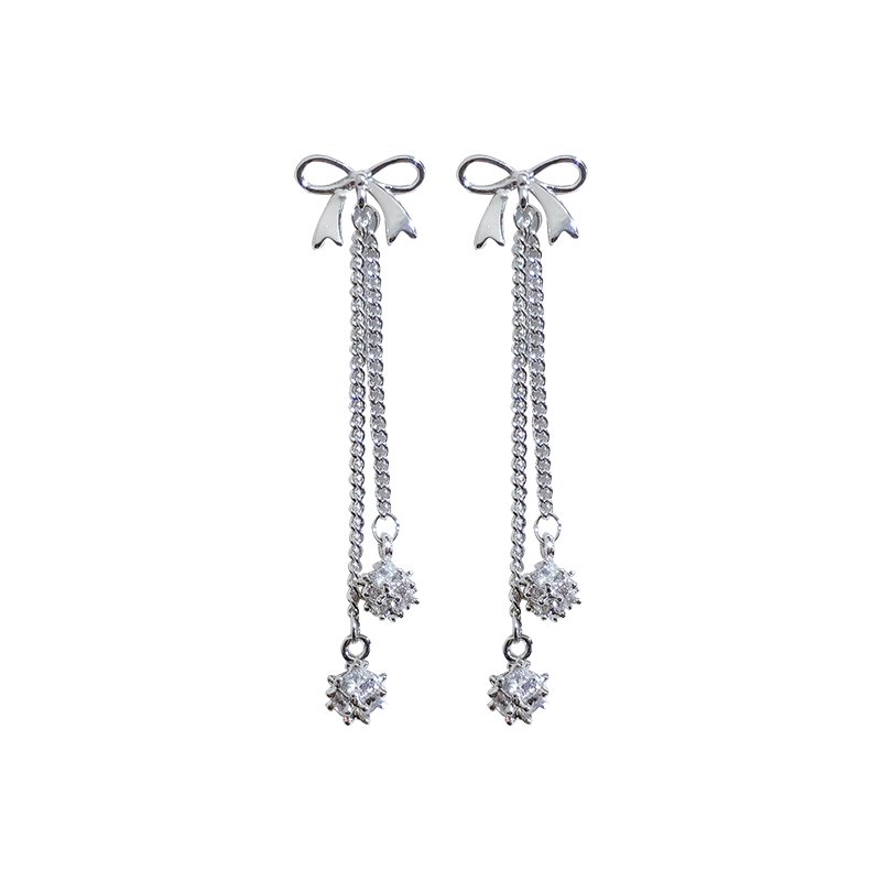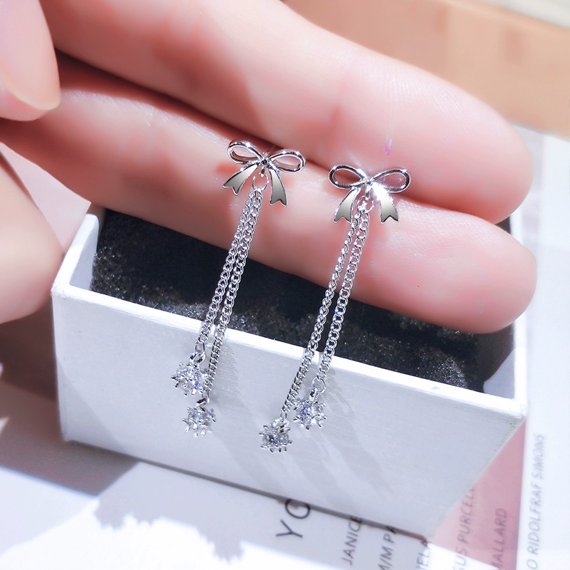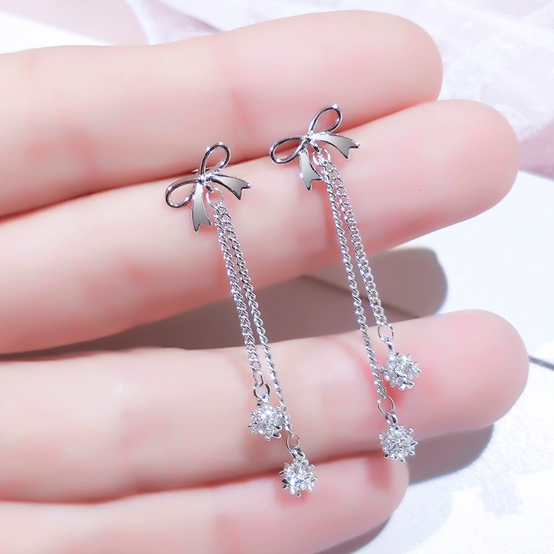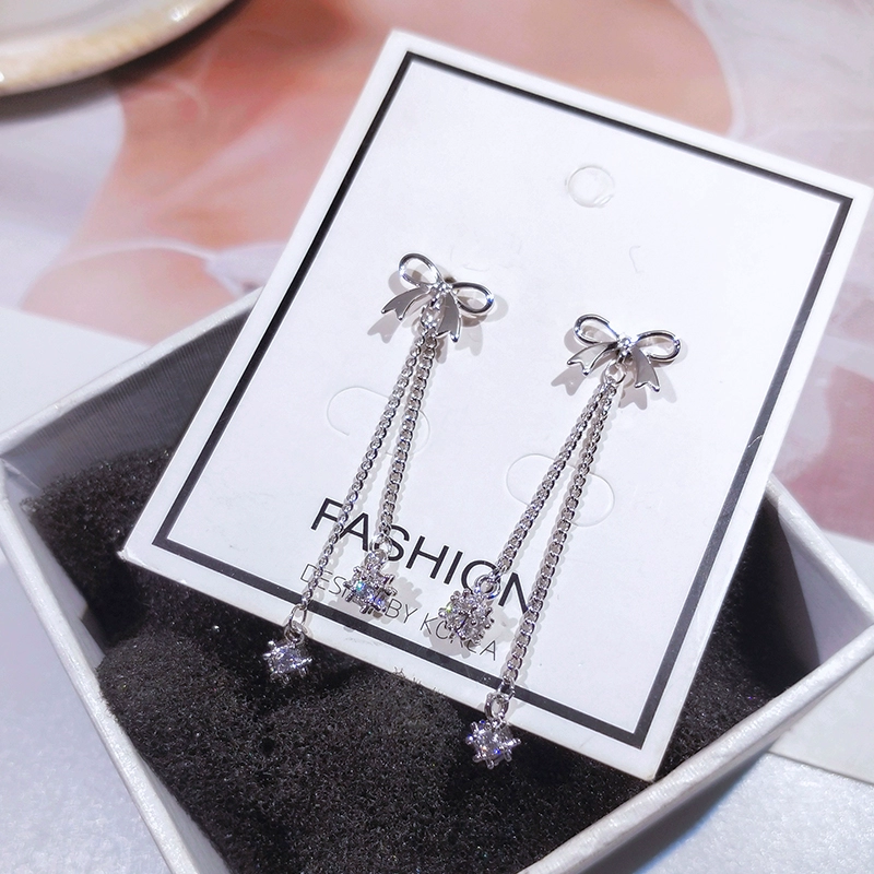 Bow Ear Clip No Piercing Women’s Earrings Korean Long Style Silver Needle Earrings 2024 New Trendy Internet Celebrity Earrings