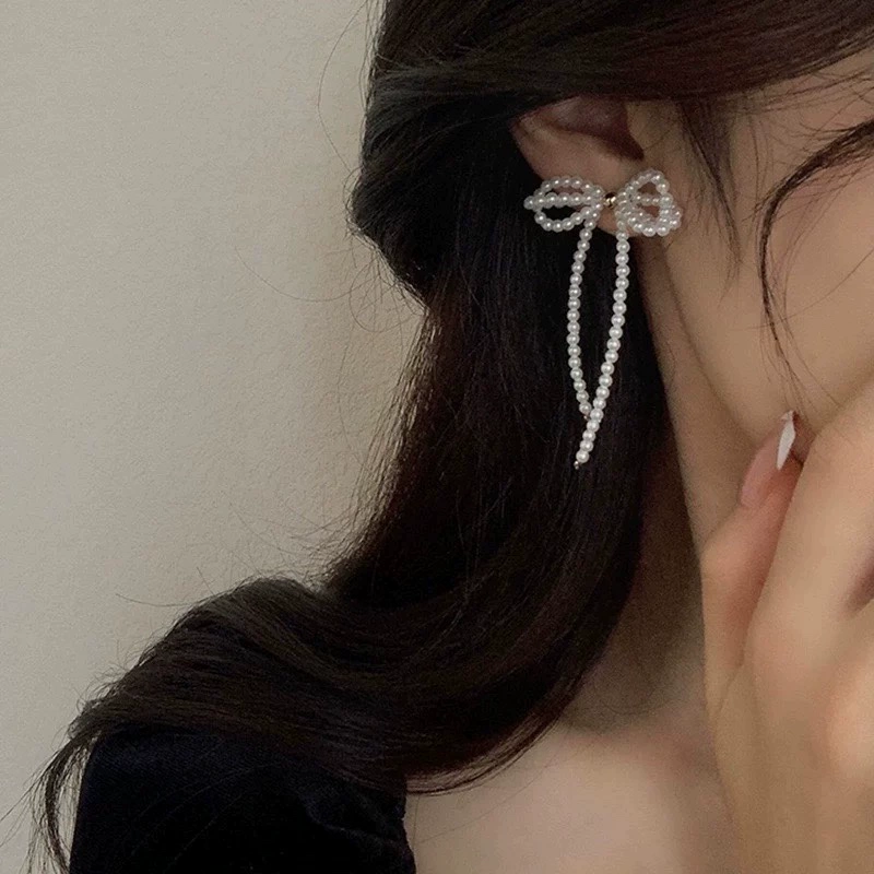 Bow earrings, niche super fairy internet celebrity earrings for women, simple, high-end, temperament, versatile earrings for slimming women