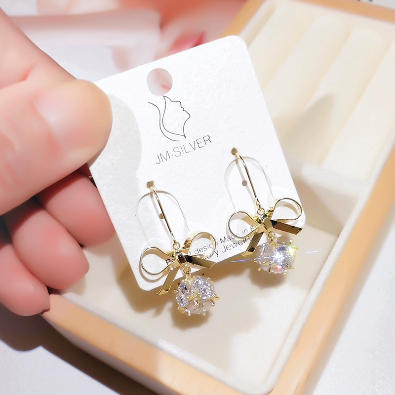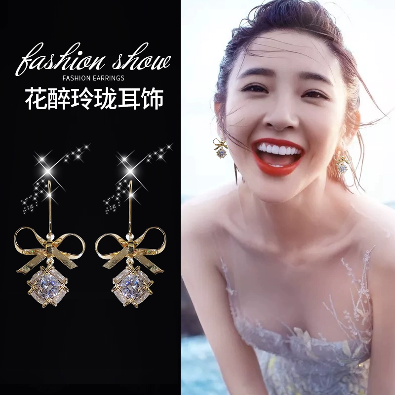 | nameOriginal | Bow Earrings Women's Long Style Super Fairy Internet Celebrity Imitation Zircon Earrings Silver Needle Earrings Niche Cold Style Earrings |