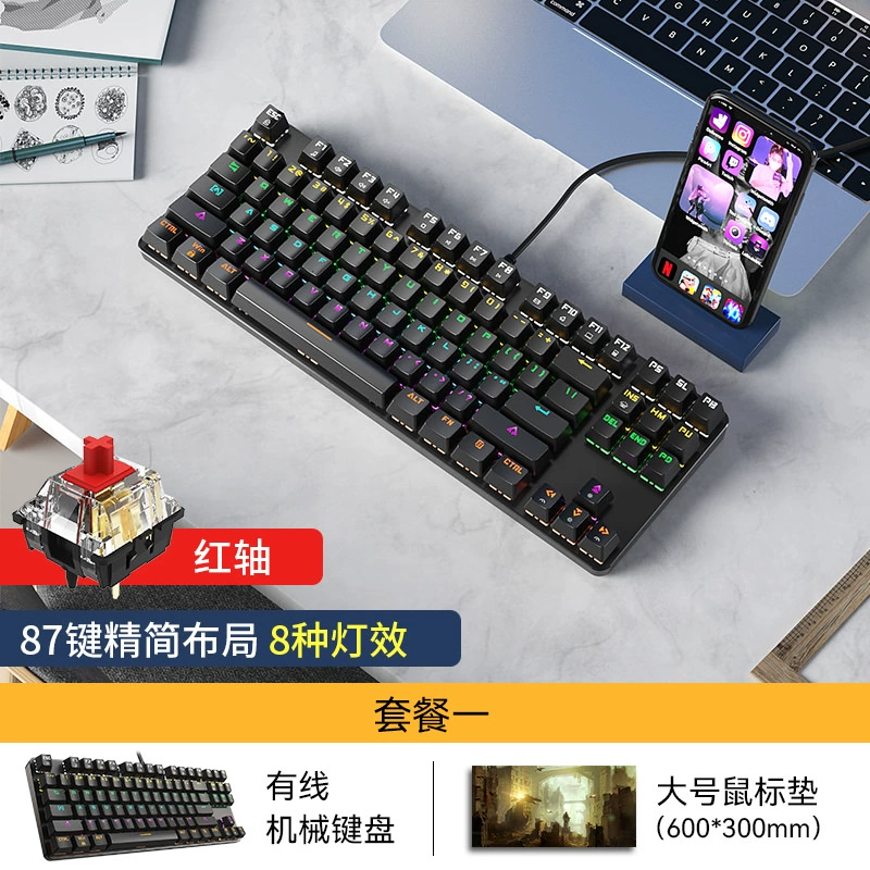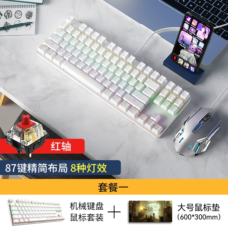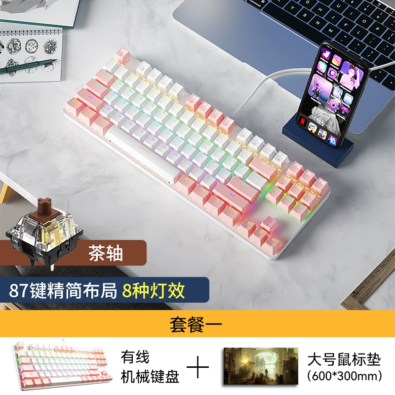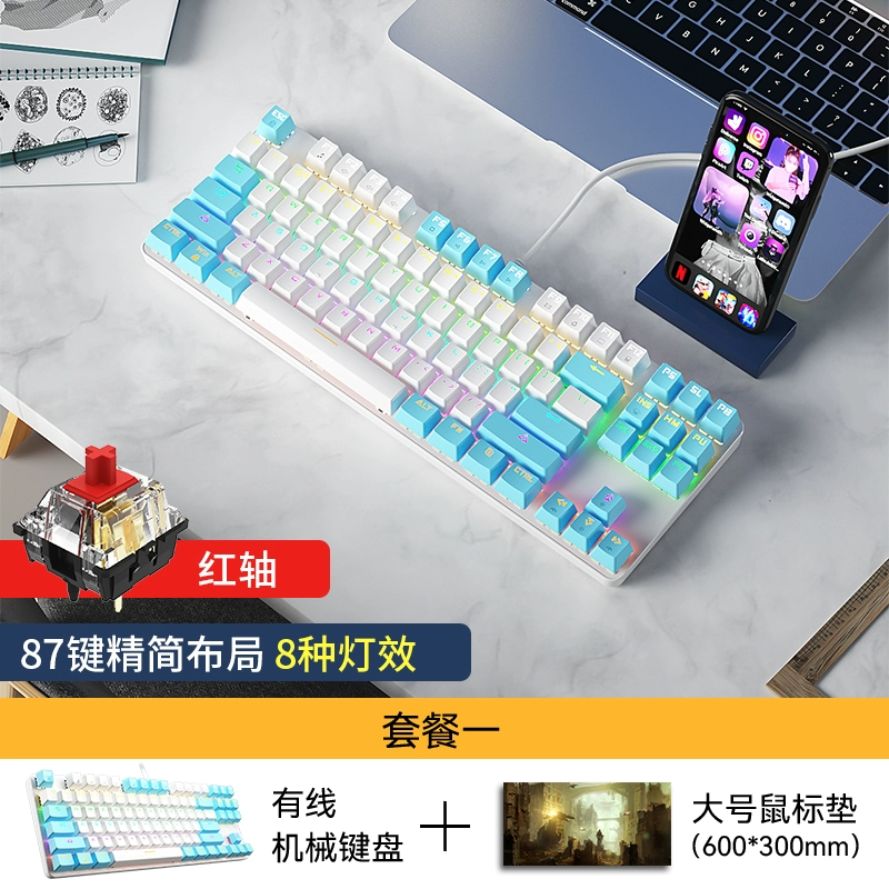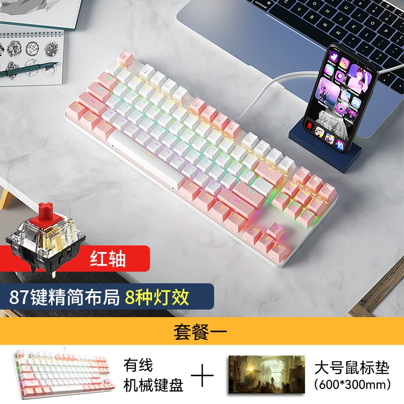 BOW Esports Game Wired Mechanical Keyboard Green Axis Tea Axis Red Axis Mouse Set Notebook Desktop Computer 87 Keys External USB Small Keyboard Mouse Special for Girls Typing