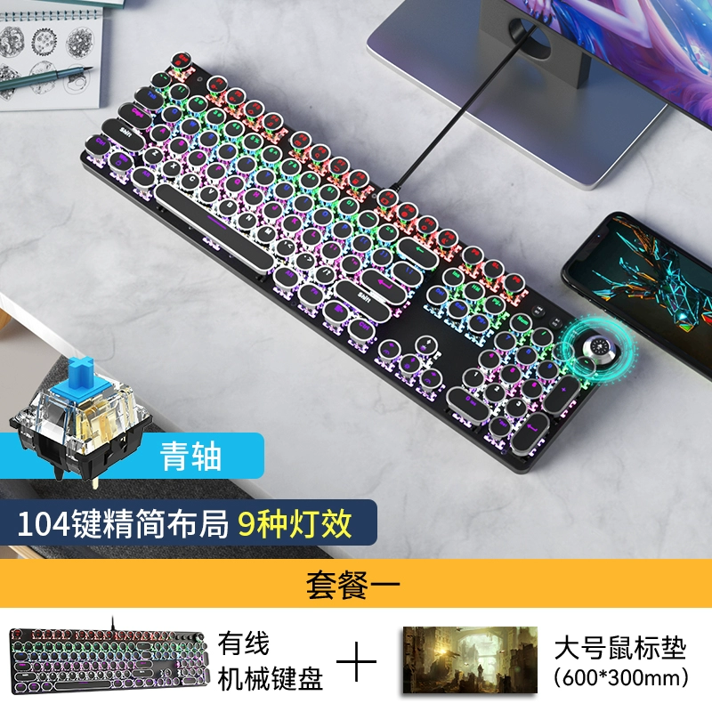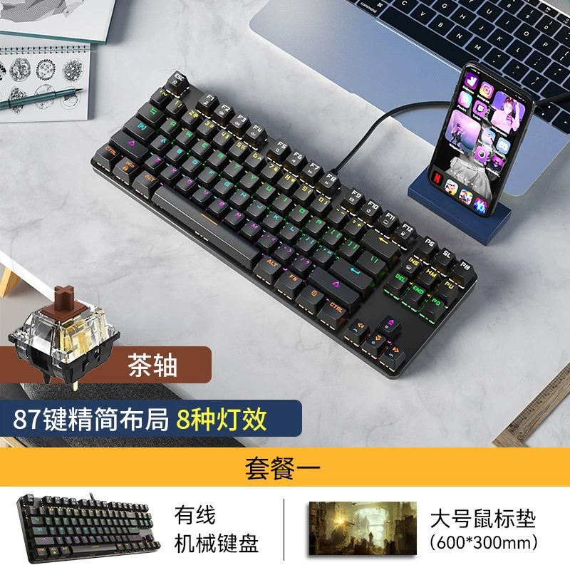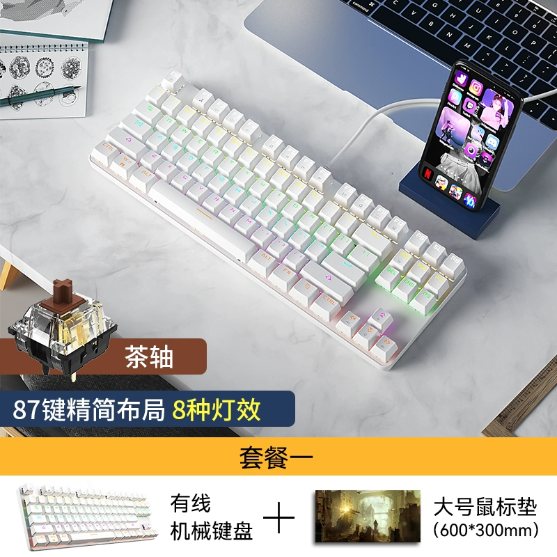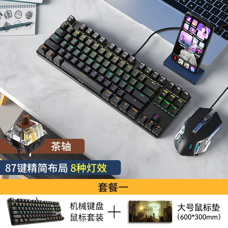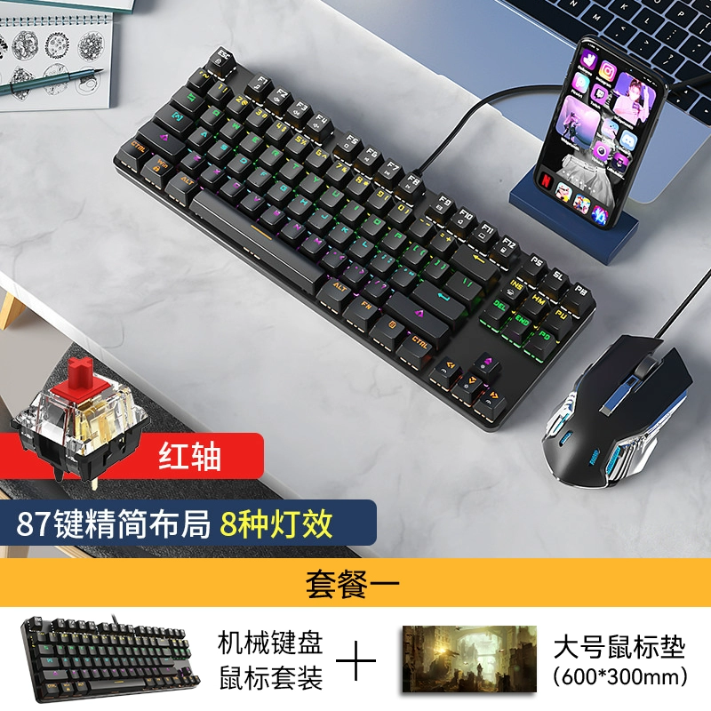 BOW Esports Game Wired Mechanical Keyboard Green Axis Tea Axis Red Axis Mouse Set Notebook Desktop Computer 87 Keys External USB Small Keyboard Mouse Special for Girls Typing