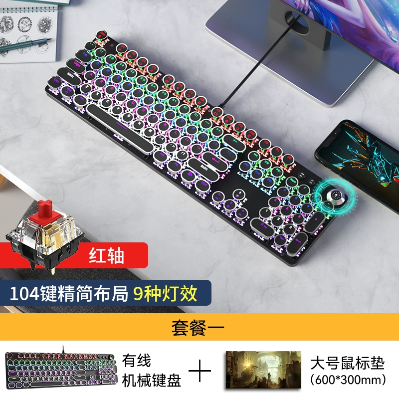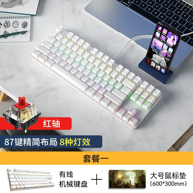 BOW Hangshi Gaming Games Wired Mechanical Key CD -ROM Green shaft red shaft red shaft mouse set Note This desktop computer 87 key connected USB girl typing special small key mouse