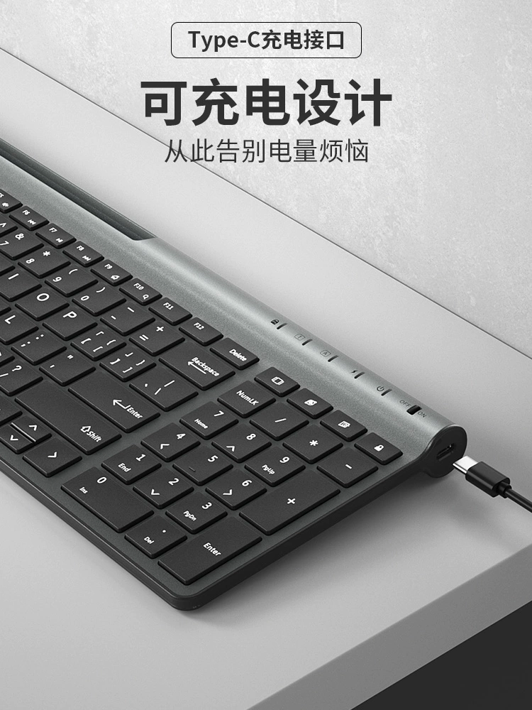 BOW Hangshi Rechargeable Wireless Keyboard Mouse Set External Laptop Desktop Computer Home Office Silent Silent Film Light Thin Portable Game Typing Special Keyboard Mouse Ultra Thin