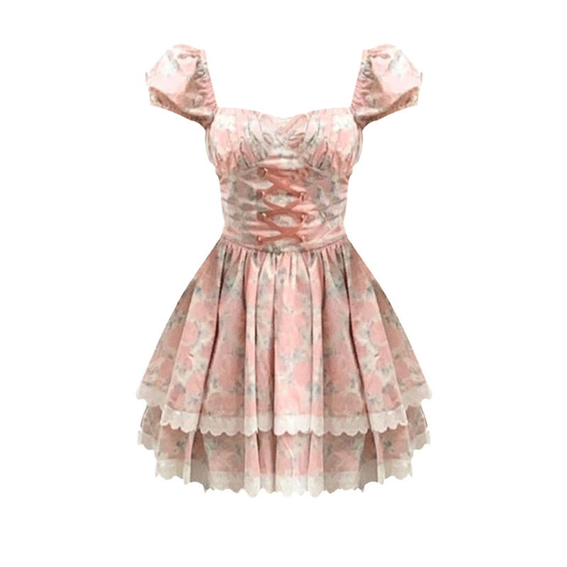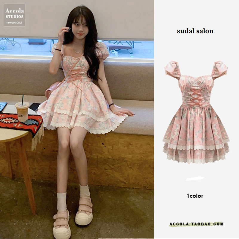 | nameOriginal | Bow mesh pink floral fluffy princess skirt |
