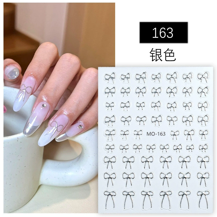 Bow nail art sticker Japanese simple cute hot girl black and white embossed three-dimensional bow nail sticker decoration