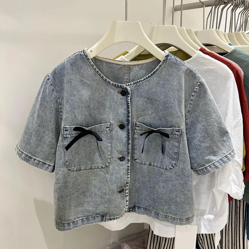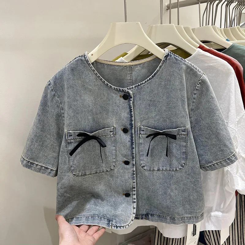 | nameOriginal | Bow Short Denim Coat Women's 2024 Summer New Short Design Sense Loose Fashion Top |