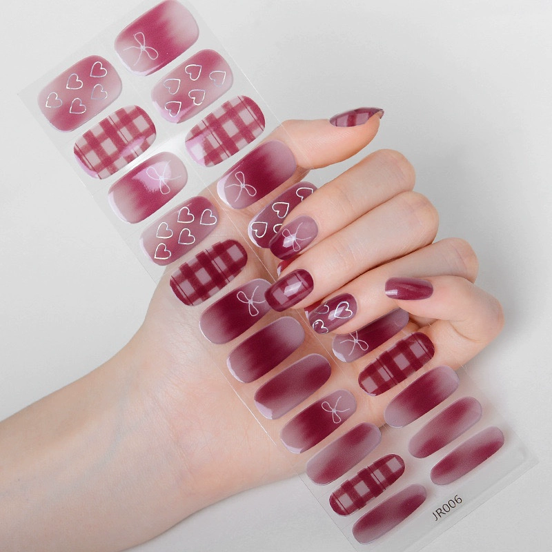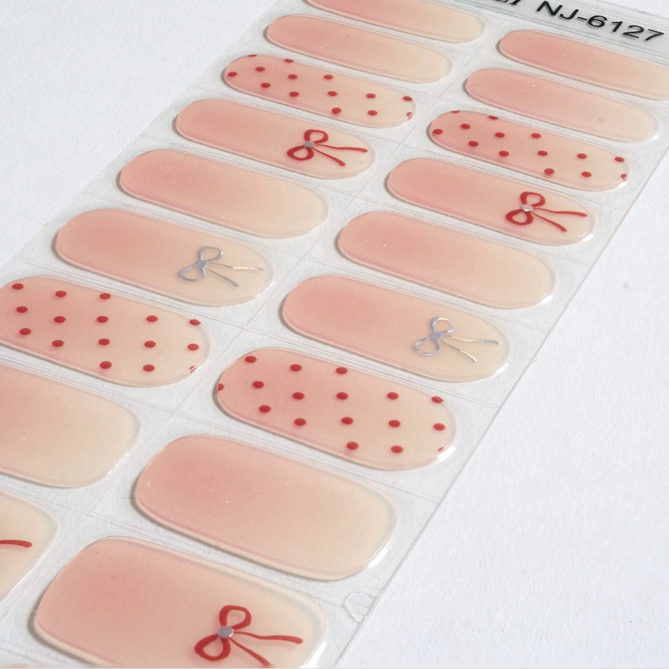 Bow spring and summer half-baked semi-cured gel 20 finger nail stickers light therapy baking lamp waterproof nail stickers