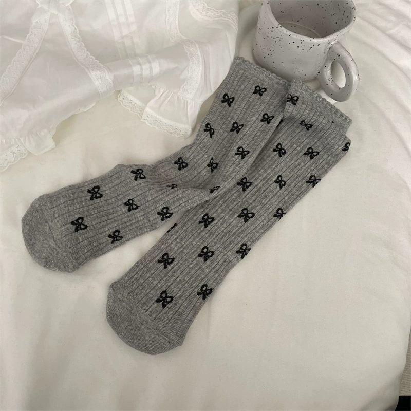 Bow’s thin gray rippling Korean socks