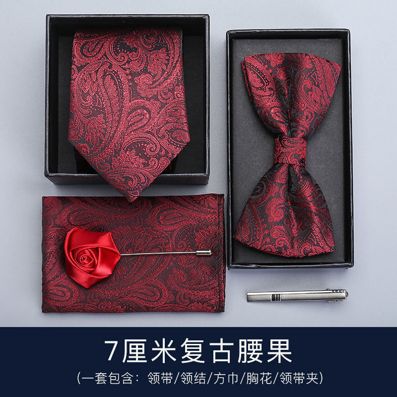 | nameOriginal | Bow tie wedding men's dress 5-piece wine red tie men's formal wear Korean wedding groom pull tie clip |
