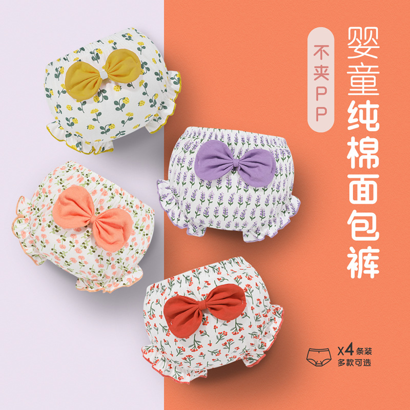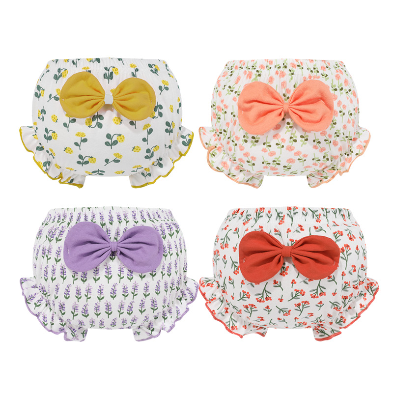 Bow triangle double flounce cotton outer wear thin factory direct cartoon cute children's underwear bread pants