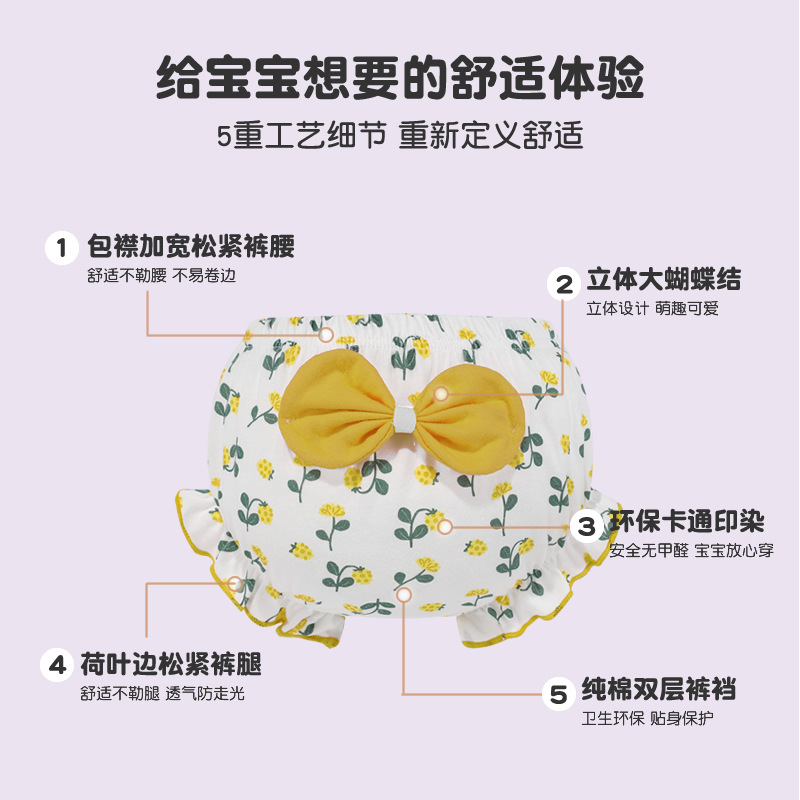 Bow triangle double flounce cotton outer wear thin factory direct cartoon cute children’s underwear bread pants