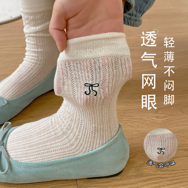 | nameOriginal | Bowknot Socks Summer Women's Pure Cotton Thin Japanese Style All-match Mid-tube Socks Mesh Breathable JK Ballet Stacked Socks |