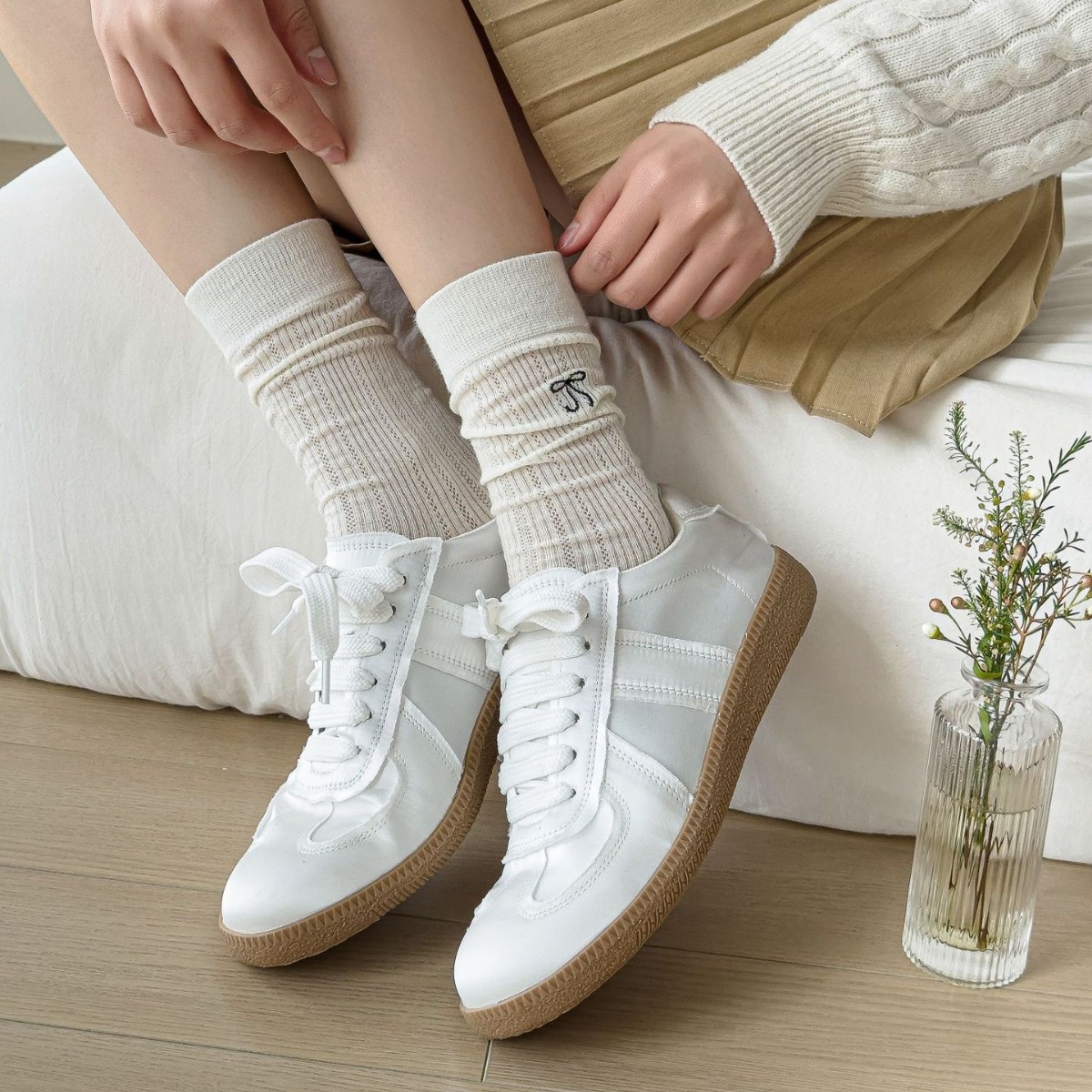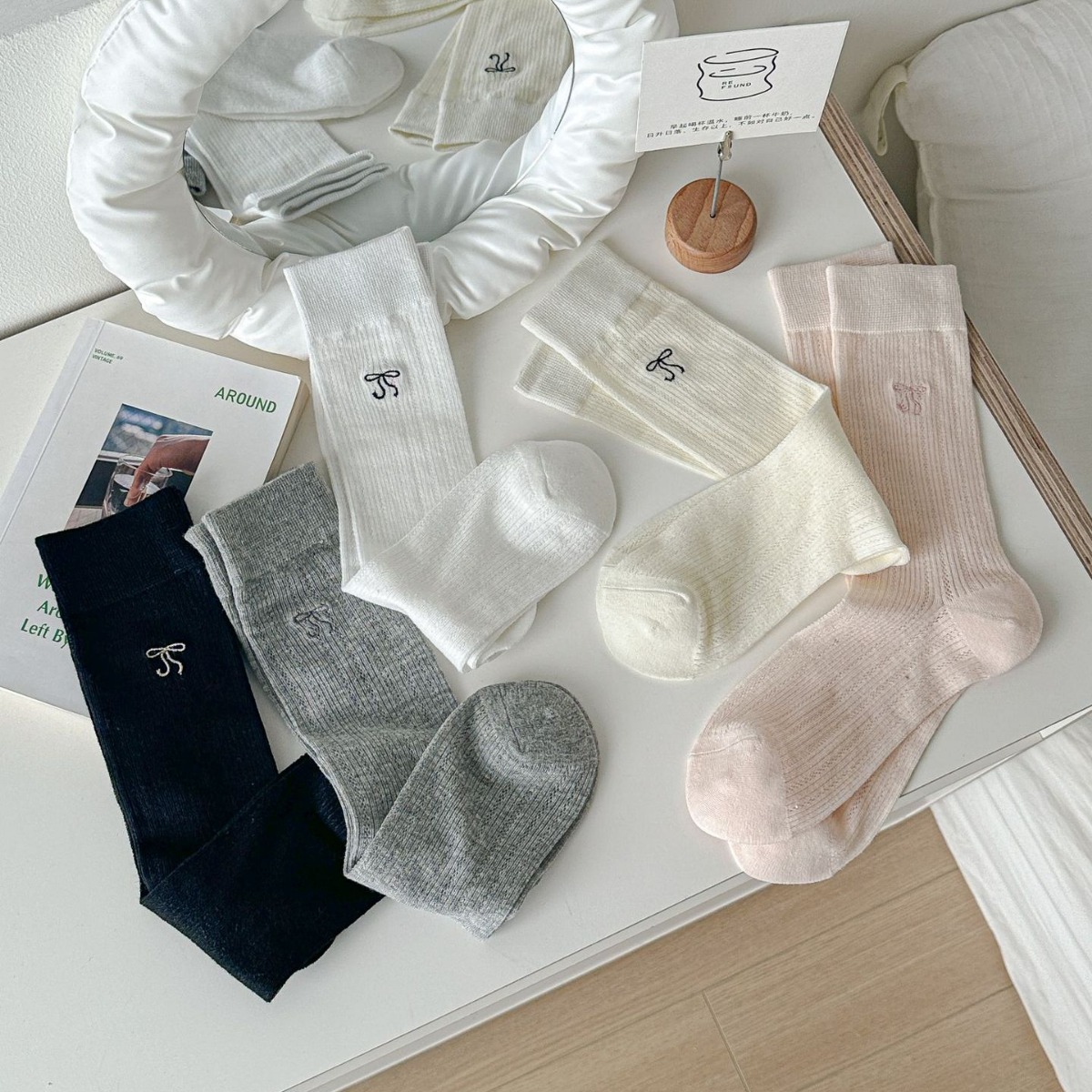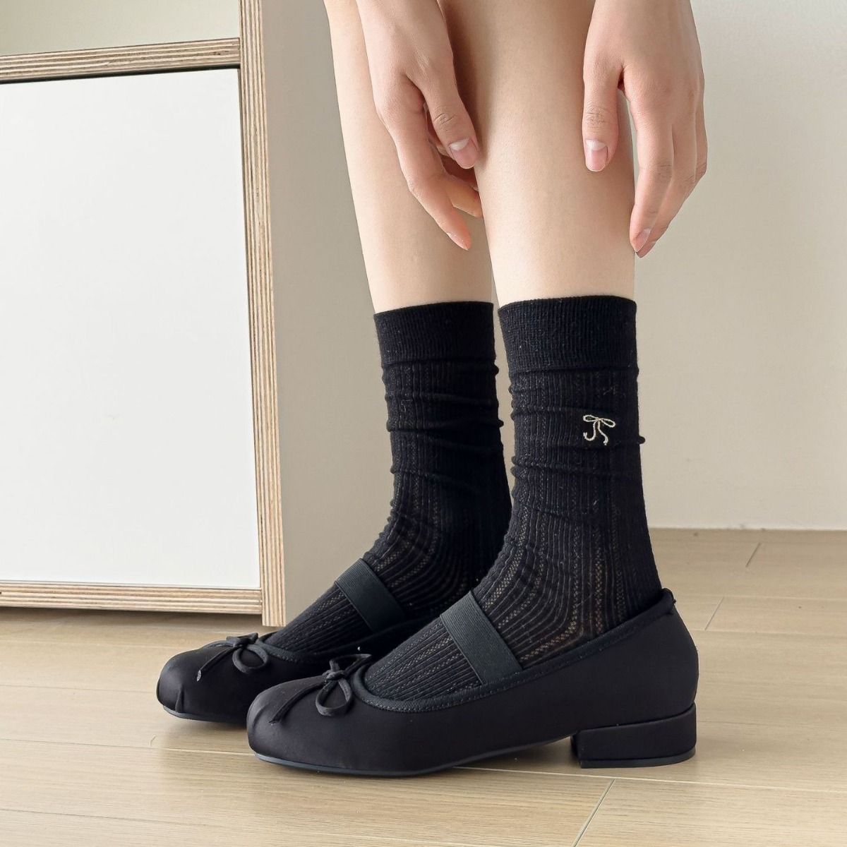 Bowknot Socks Thin Ballet Stacked Socks Japanese Style All-match Mid-length Socks Hollow Mesh Breathable Solid Color Stockings