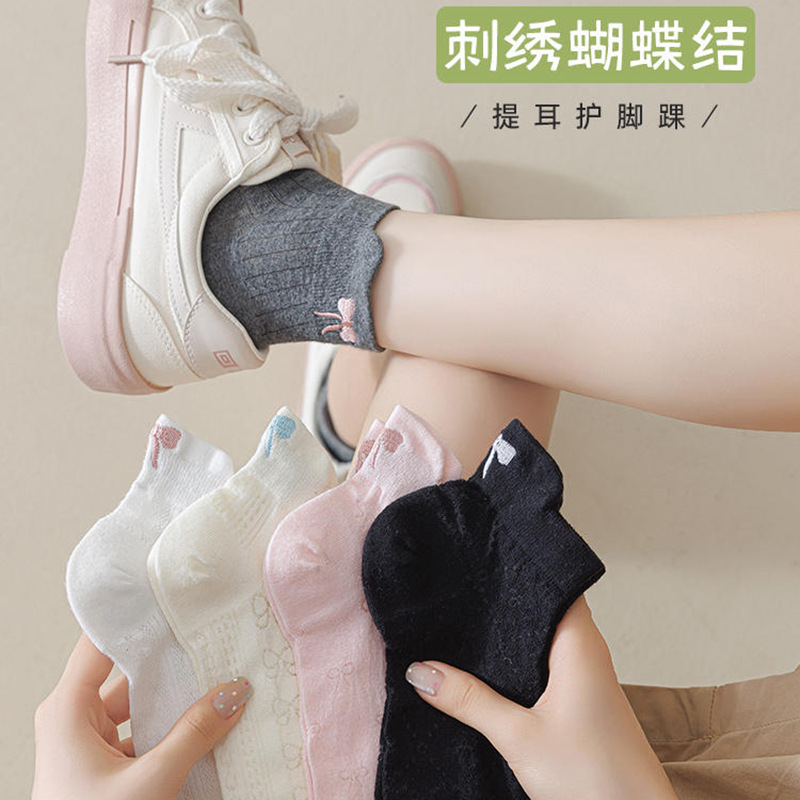 Bowknot Socks Women's Summer Thin Short Socks Korean Style Japanese Style Cute Mesh Breathable White Summer Boat Socks Ins