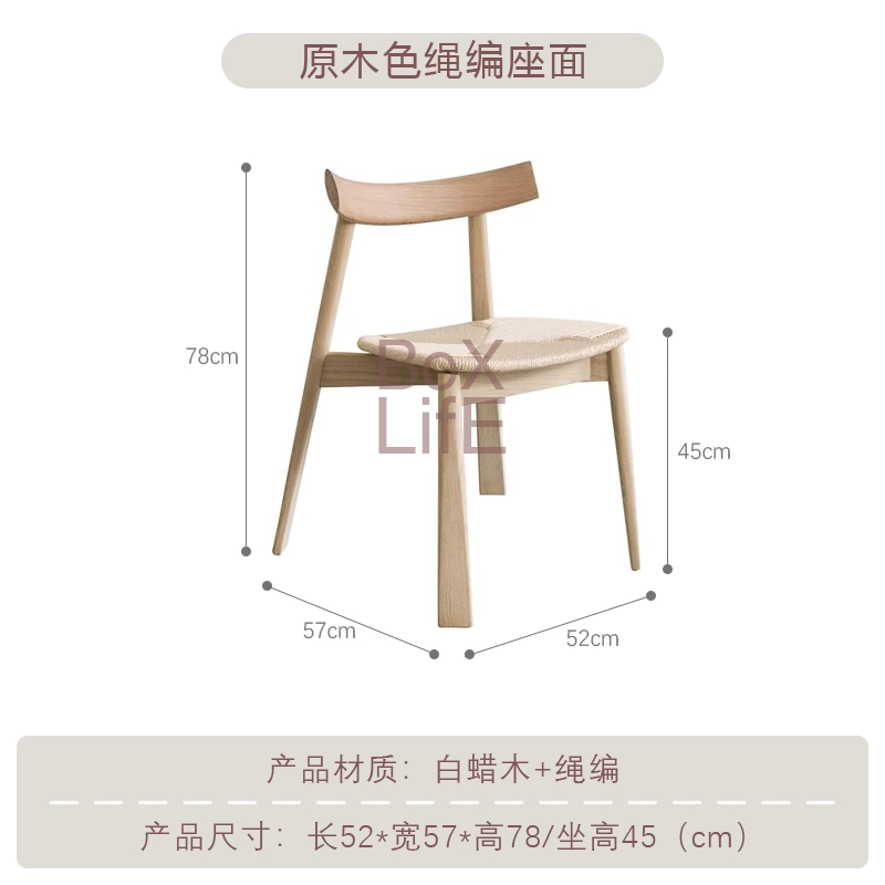| nameOriginal | Box Life Nordic Paddle Chair Designer Creative Solid Wood Dining Chair Hotel Home Personalized Single Chair Rope |