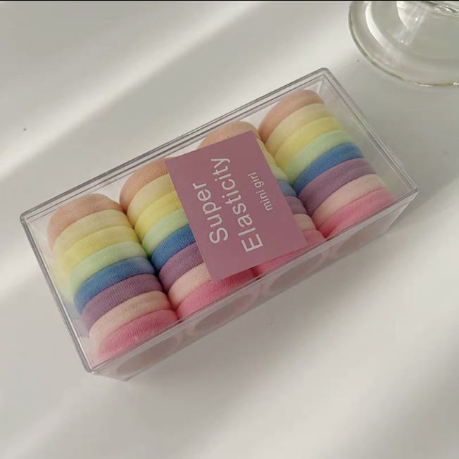 | nameOriginal | Box of 32 children's hair ties, large high ponytail headband, girls' durable high elastic rubber band student leather case  |