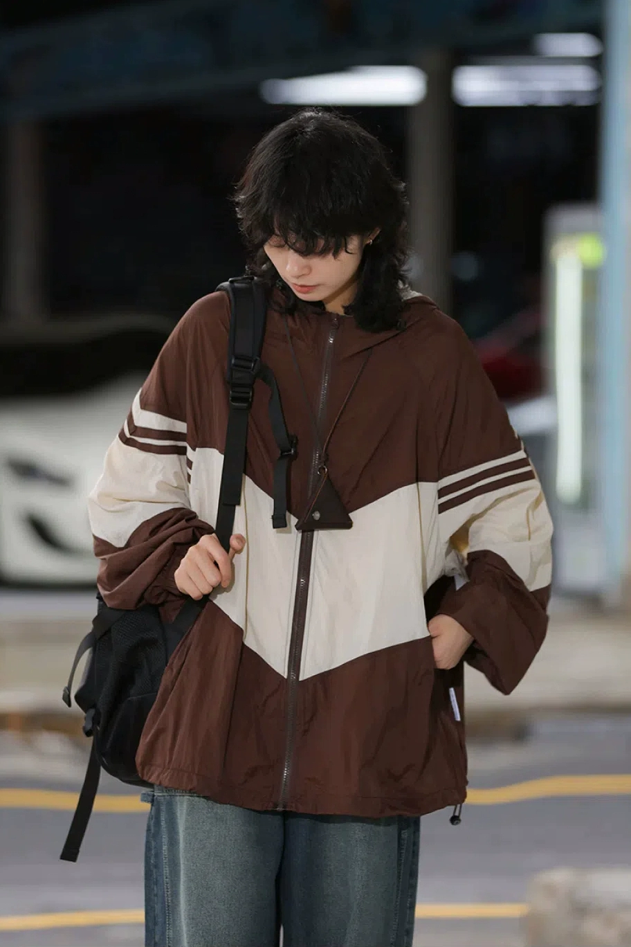 | nameOriginal | Boy silhouette men's and women's loose color-blocked thin coat jacket |