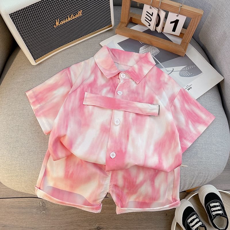 | nameOriginal | Boys' 2023 Summer New Short-sleeved Shirt suit Children's Fashionable Tie-dye Shirt Shorts Two-piece Fashionable Set for Boys |