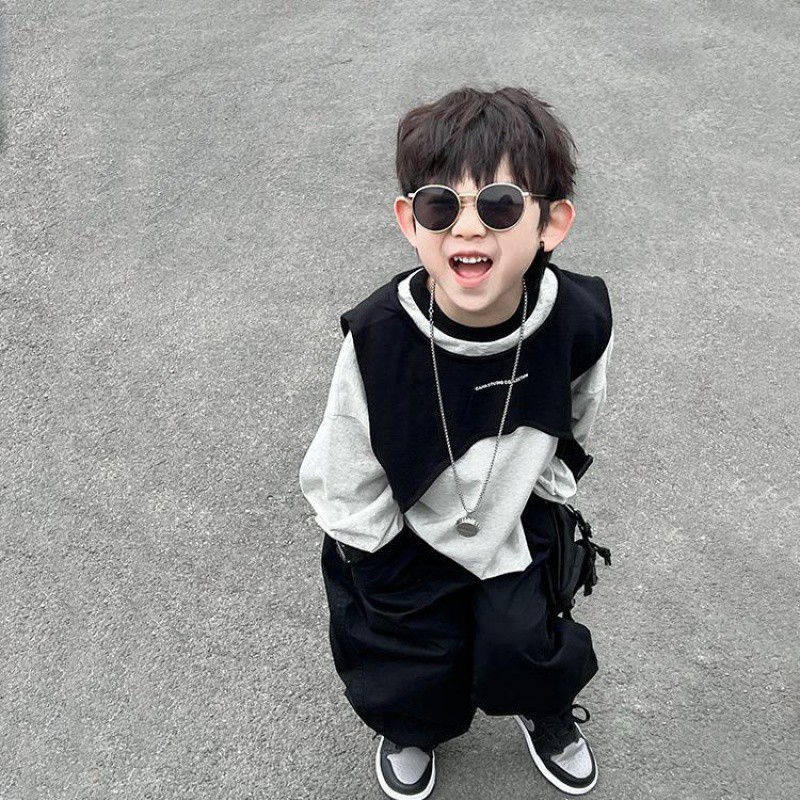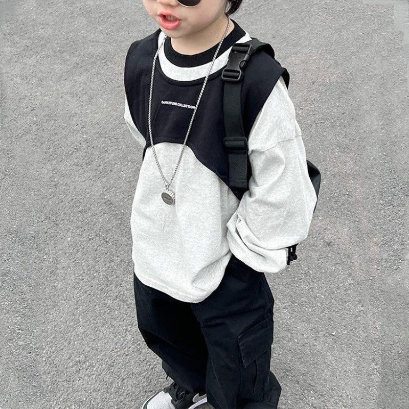 Boys’ 2024 Spring and Autumn Boys Handsome Tooling Jacket Two-Piece Baby Japanese and Korean Base Shirt Long Sleeve