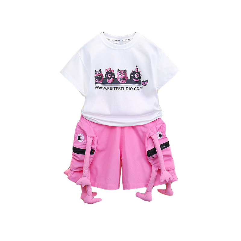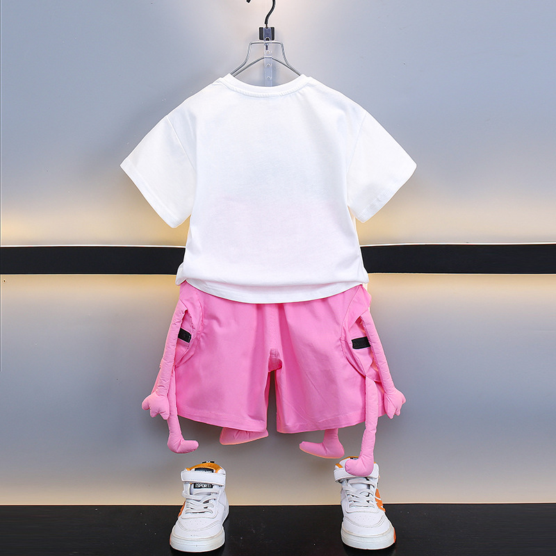 | nameOriginal | Boys' 2024 Summer New Children's All-match Funny M-bean Printed Short-sleeved T-shirt Pink Doll Shorts Two-piece Set |