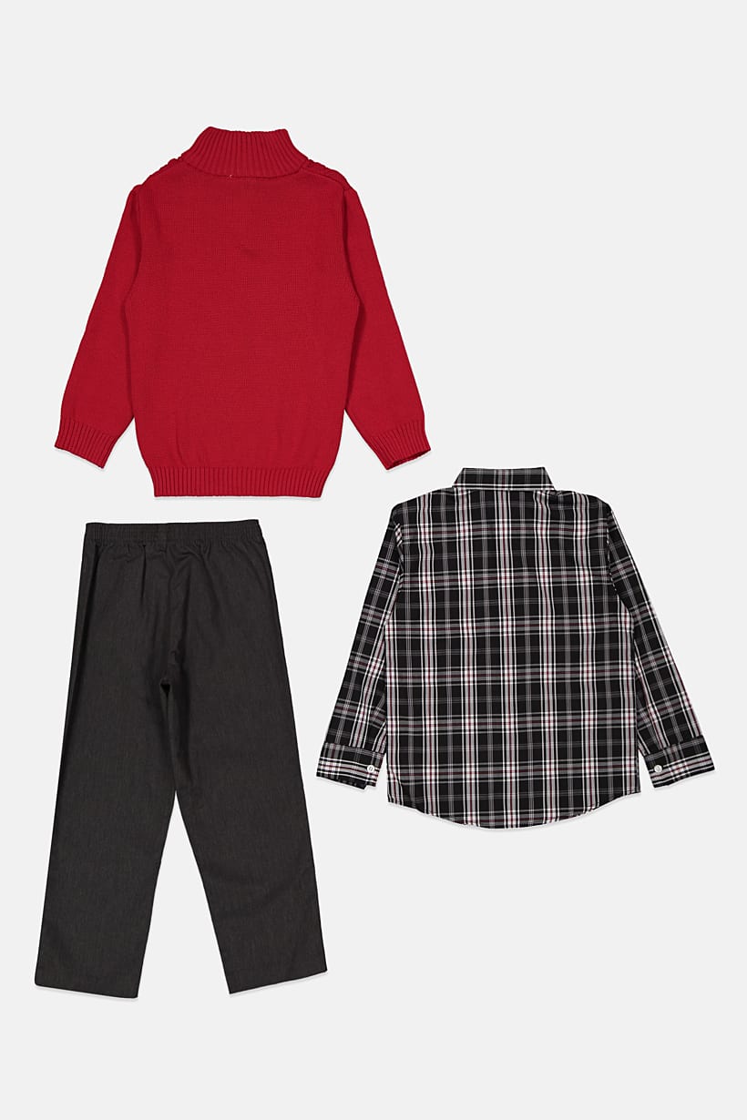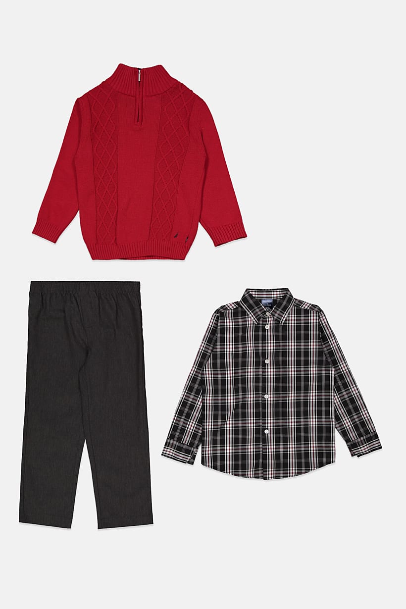 | nameOriginal | Kids Boy 3 Pieces Textured Top And Pull On Bottom Set, Red/Black/Grey |
